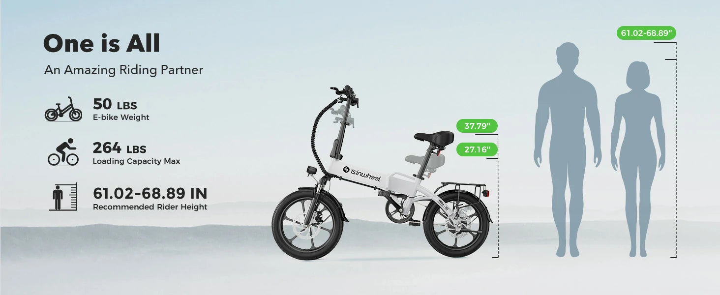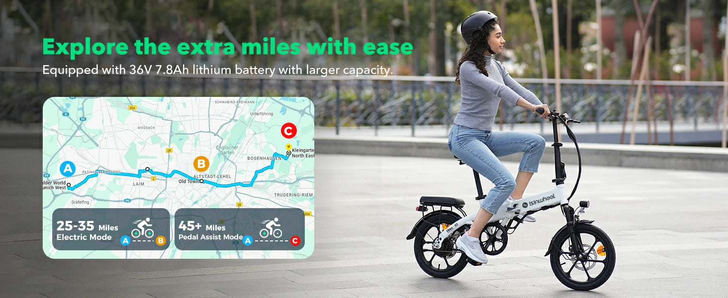 ISINWHEEL U3 16" Folding Electric Bike 500W Motor 36V 7.8Ah Battery