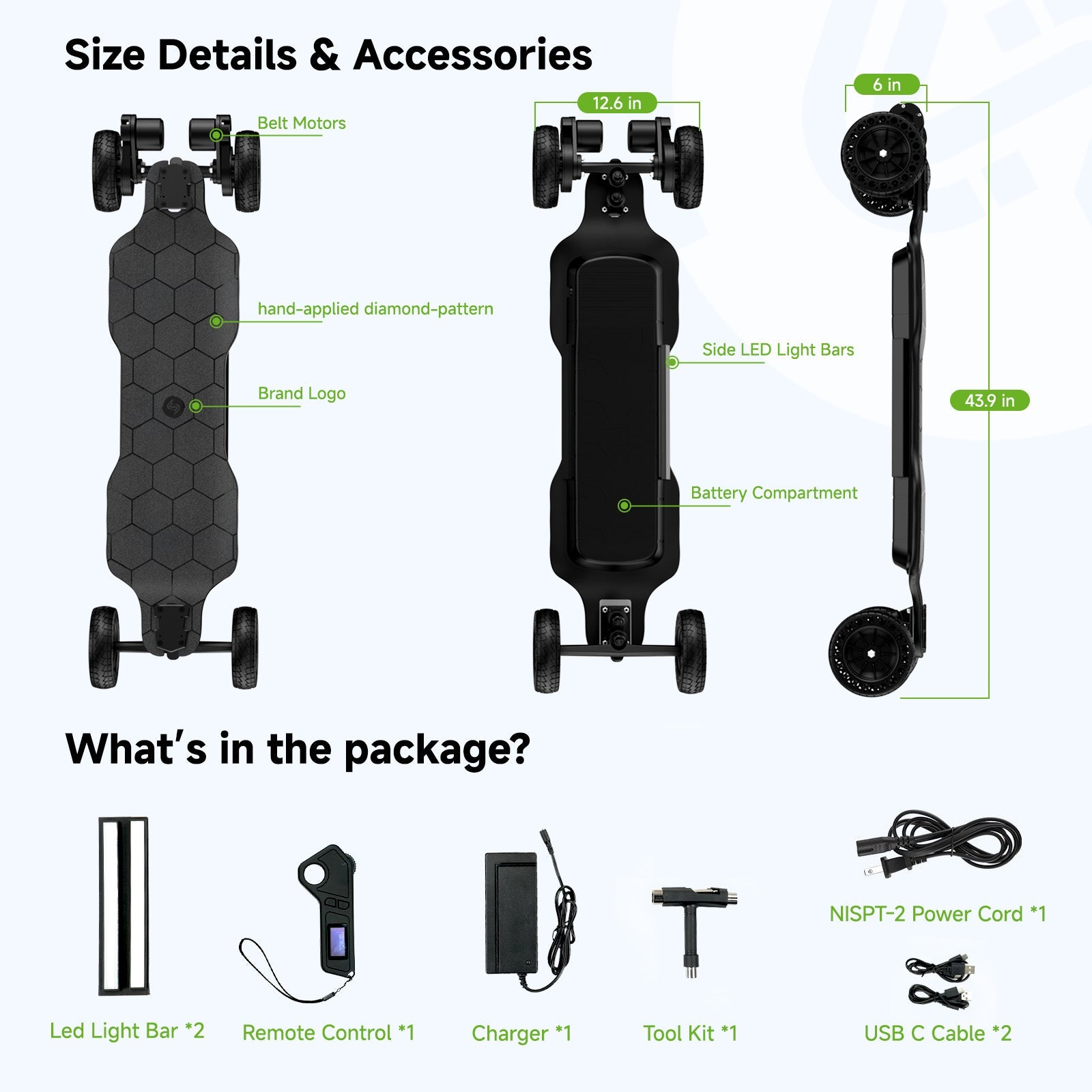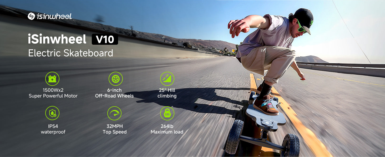 ISINWHEEL V10 Off Road Electric Skateboard with Remote Control 1500W*2 Dual Motors 43V 12.5Ah Battery