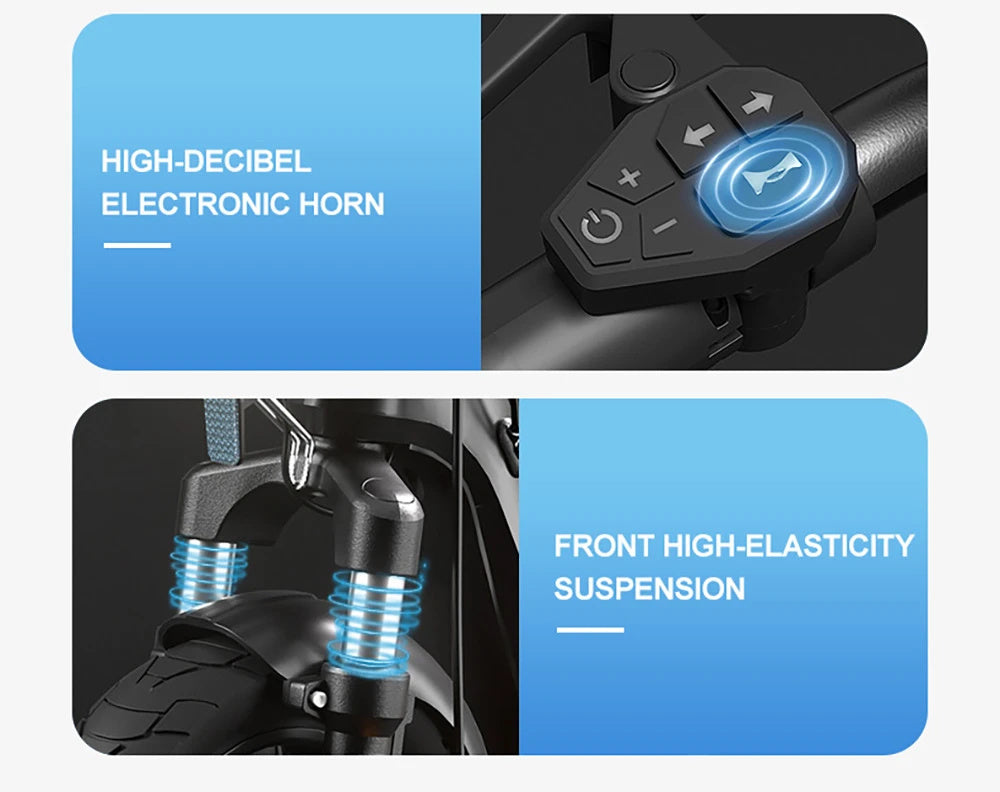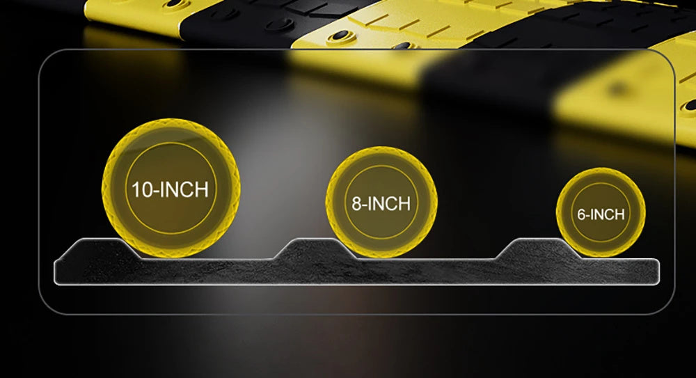 10-inch Pneumatic Tire10-inch tire with anti-skid pattern makes it easy to pass obstacles, making you drive more comfortably.