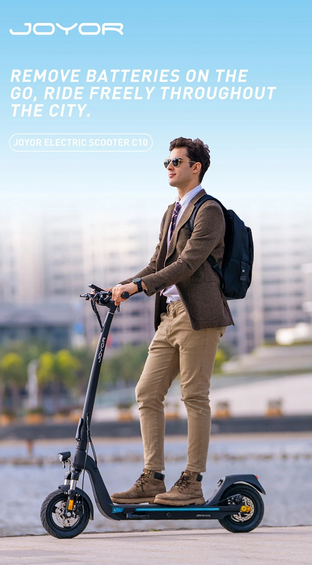 Folding DesignJOYOR C10 Electric Scooter has folding design, making it suitable for both fitting into the trunk and occupying a comer in the office.?