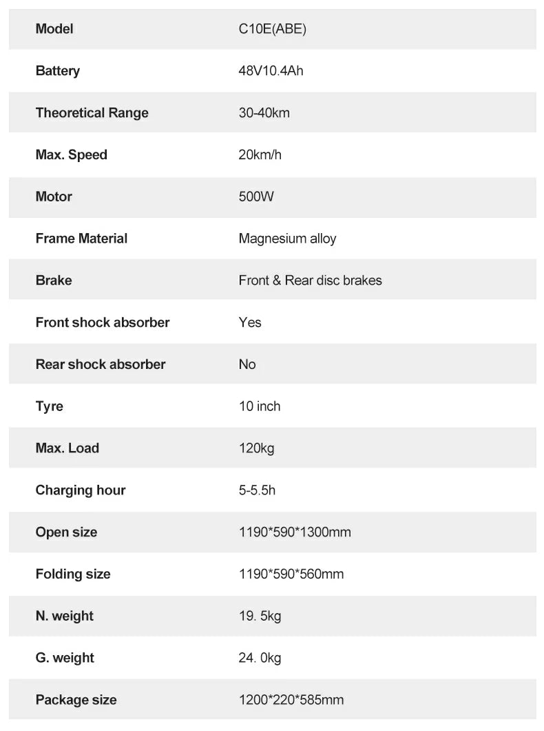 JOYOR C10E 10" Commuting Electric Scooter 500W Motor 48V 10.4Ah Battery (ABE)