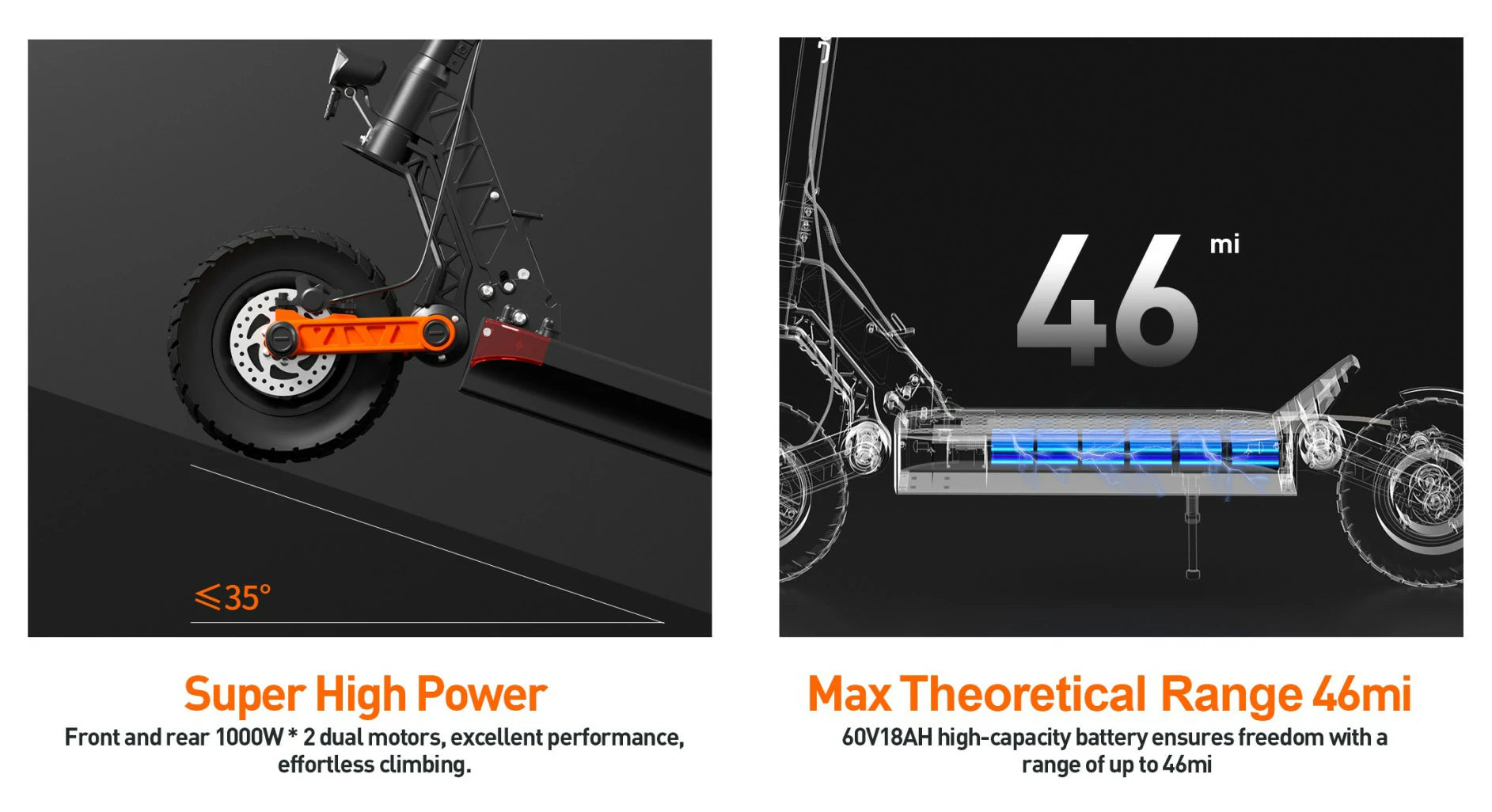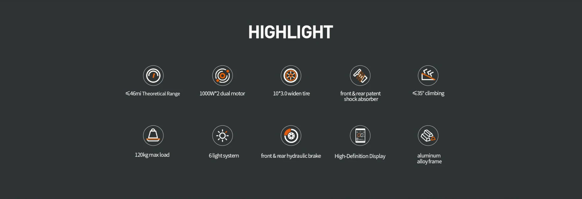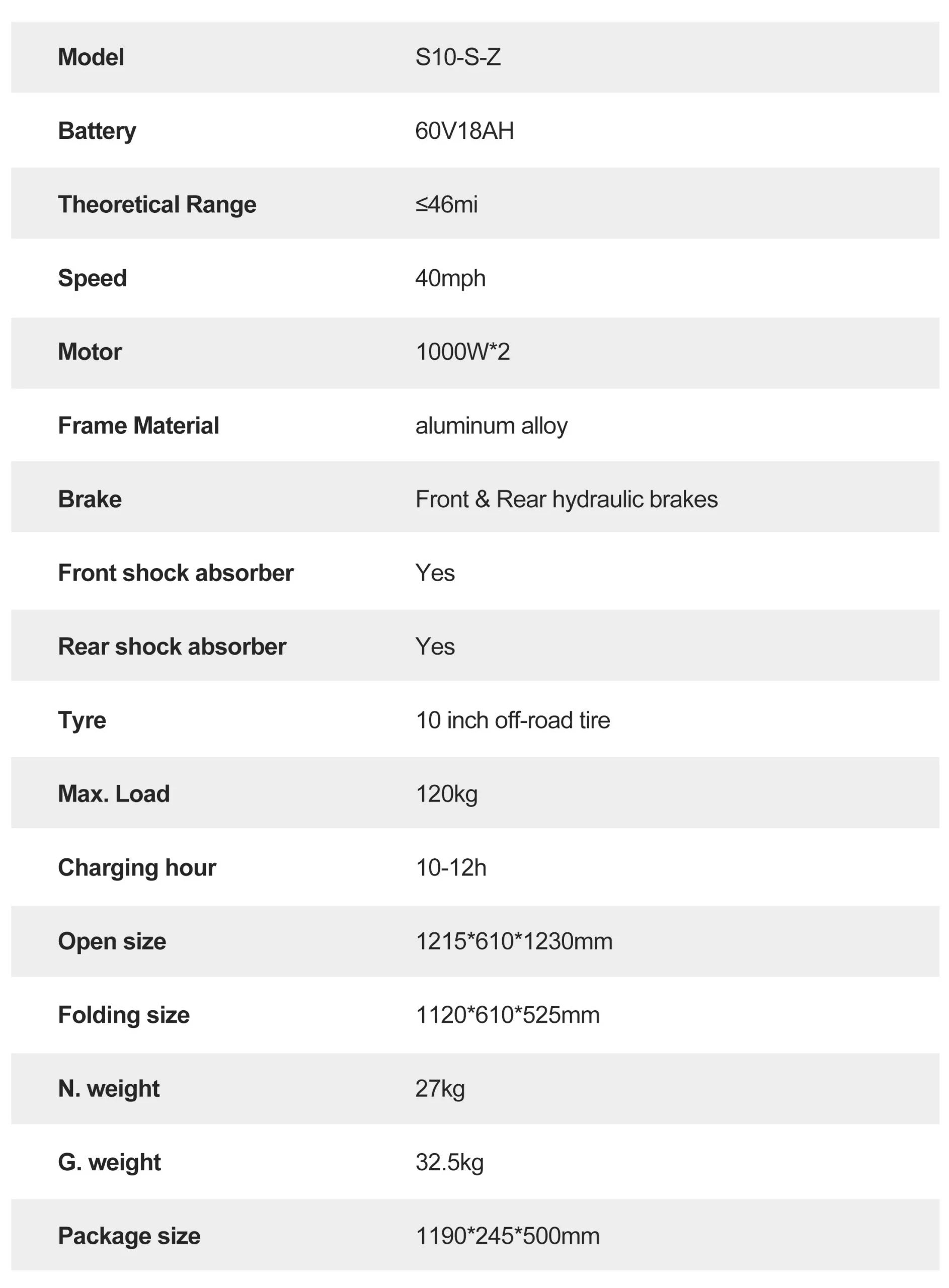 The large 10-inches front and rear tires have great shock absorption and anti-slip treads. Coupled with a 2*1000W brushless DC motor for stable power output, The S10-S-Z is set to deliver a smoother riding experience.