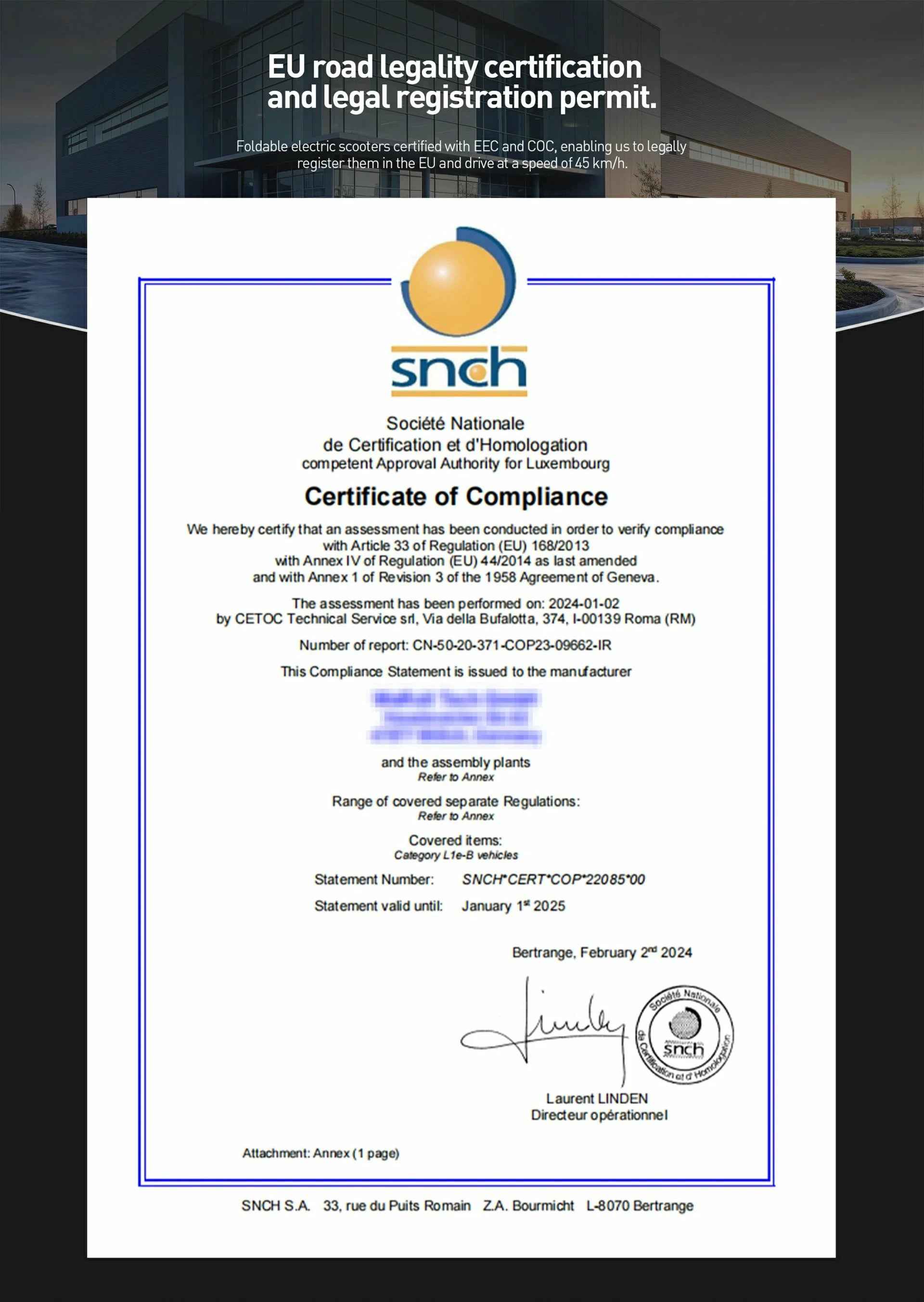 Legal regulations and general information: DRIVER'S LICENSE A category AM driver's license is required to drive. The AM category is included in the A, B and T driving license categories. INSURANCE The Joyor S8-E is subject to compulsory insurance and registration. An EU type approval (EEC) is included with the scooter. You can use this vehicle registration certificate to apply for a license plate with an insurance company of your choice.