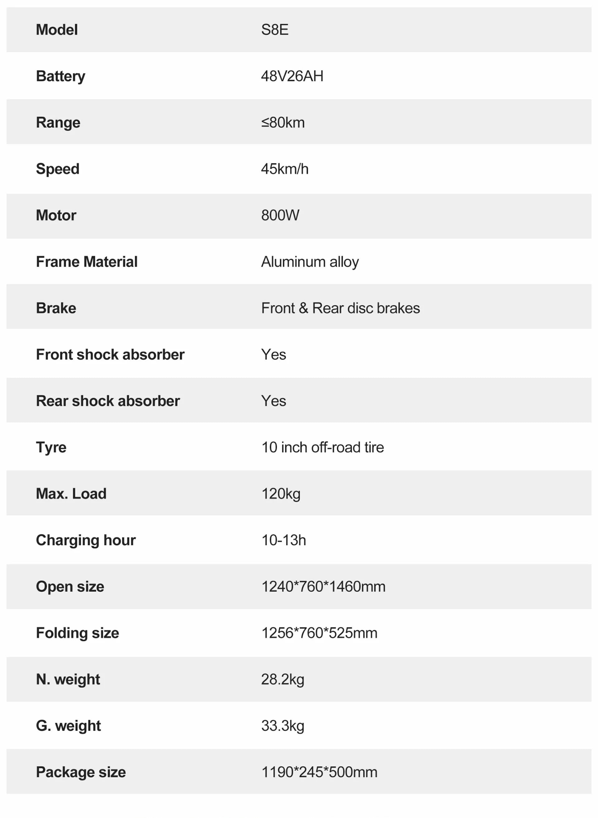 • Battery: 48V 26Ah