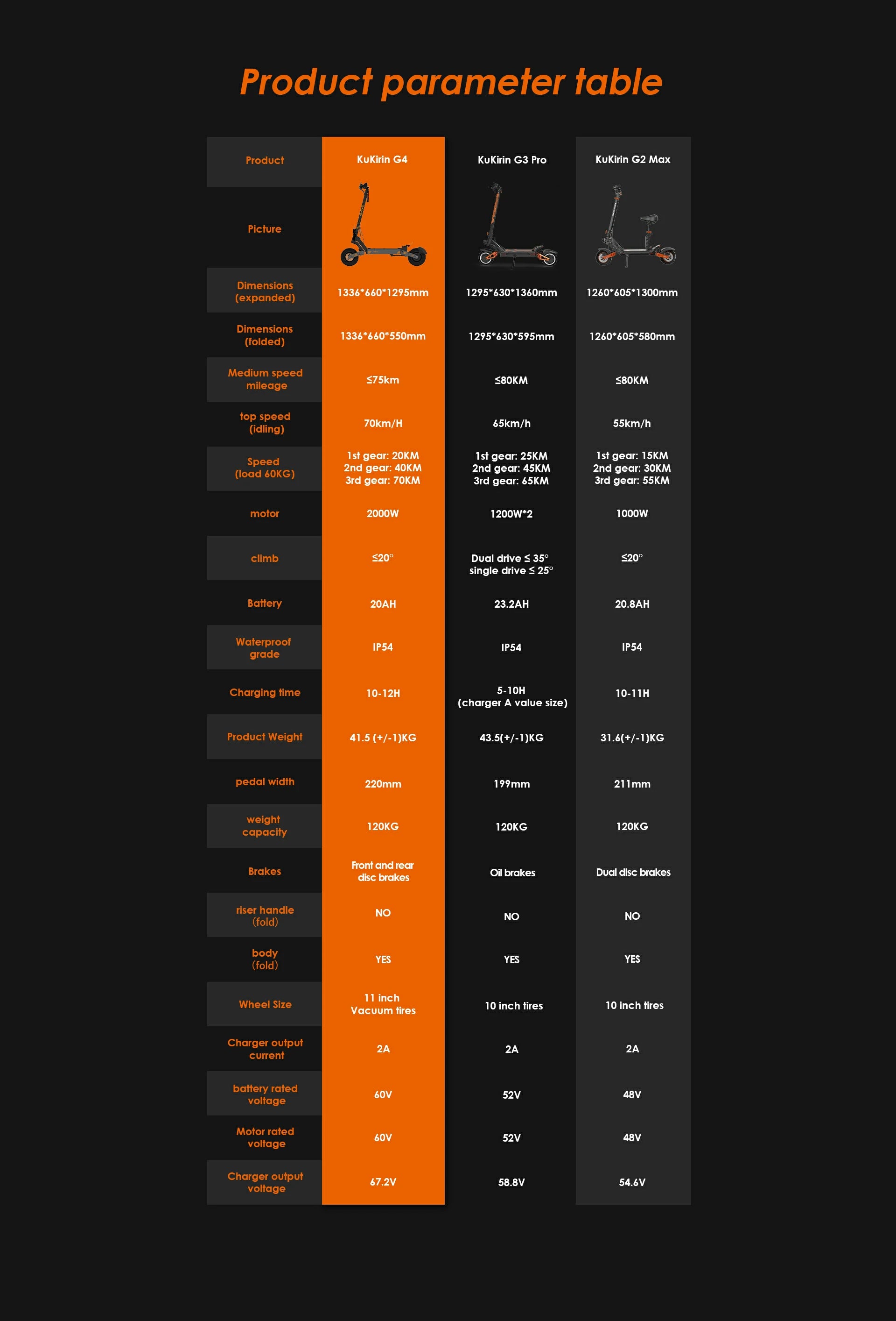 KUKIRIN G4 11" Off-Road Electric Scooter 2000W Motor 60V 20Ah Battery