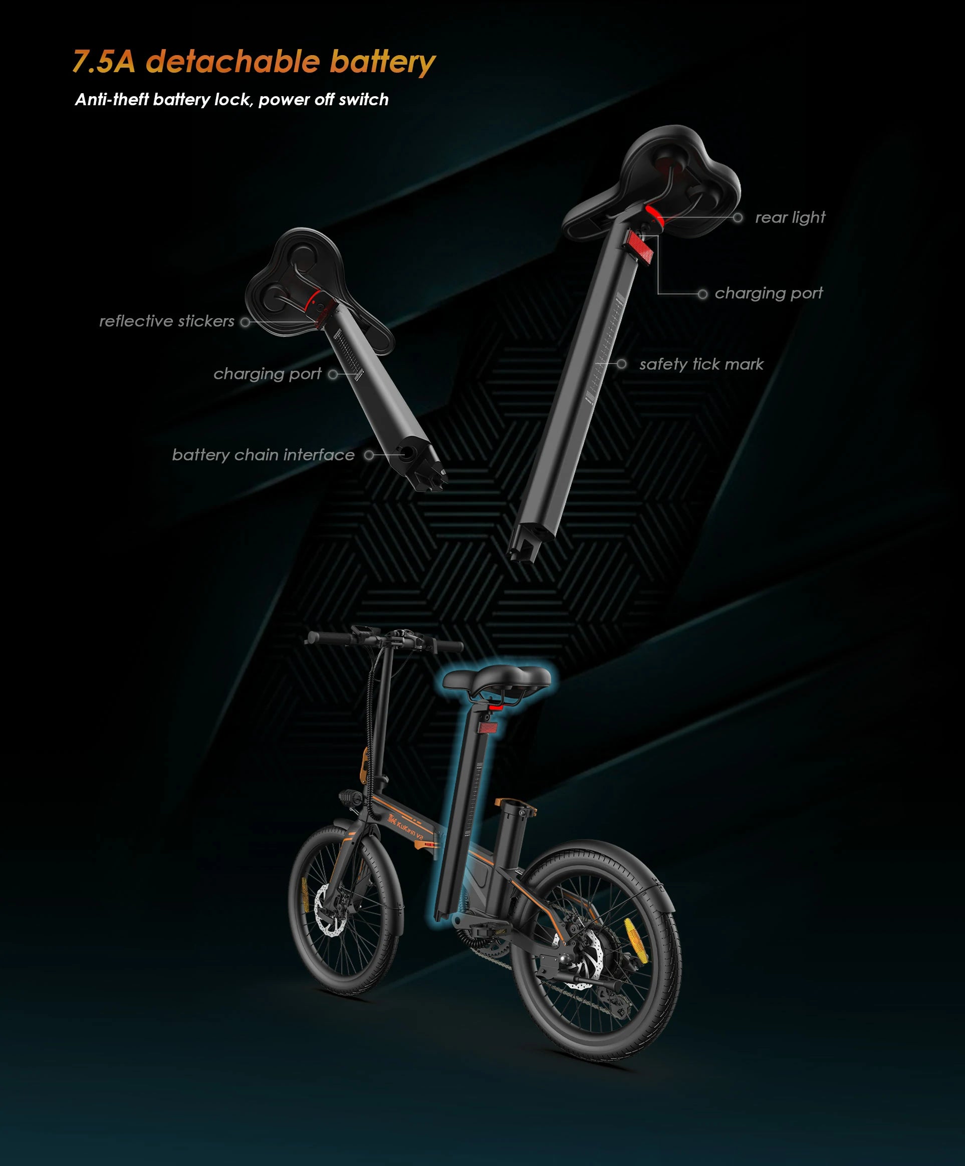 KUKIRIN V2 20" Folding Electric City Bike 250W Motor 36V 7.5Ah Battery