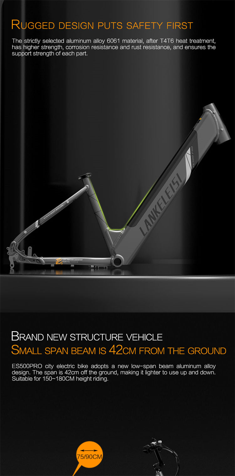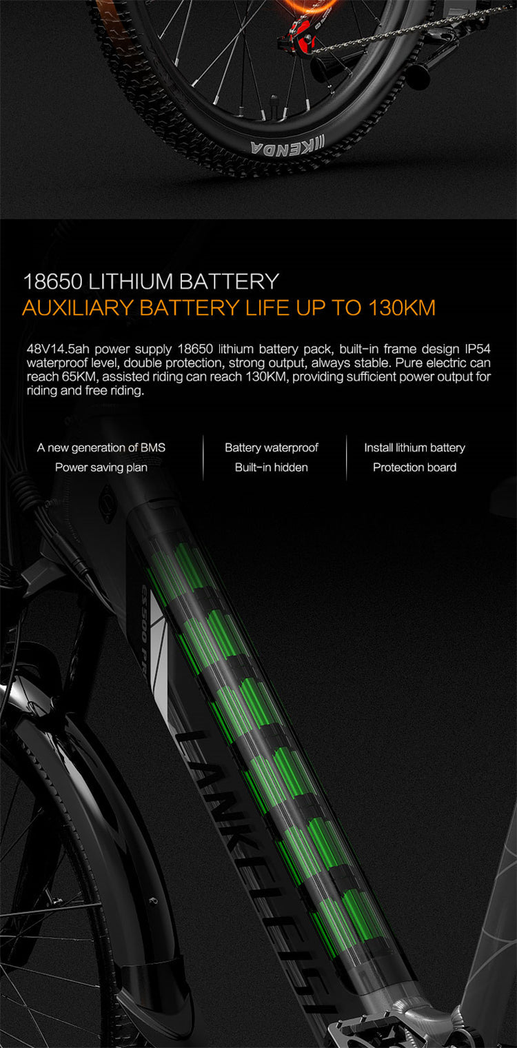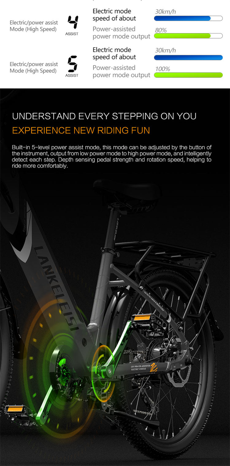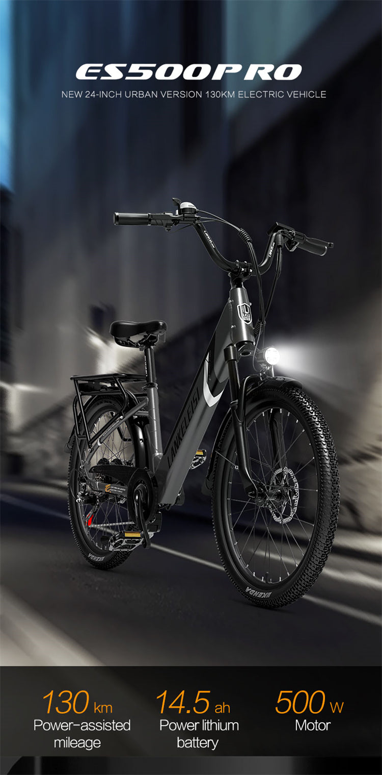 LANKELEISI ES500 Pro 24" Electric City Bike 500W Motor 48V 14.5Ah Battery