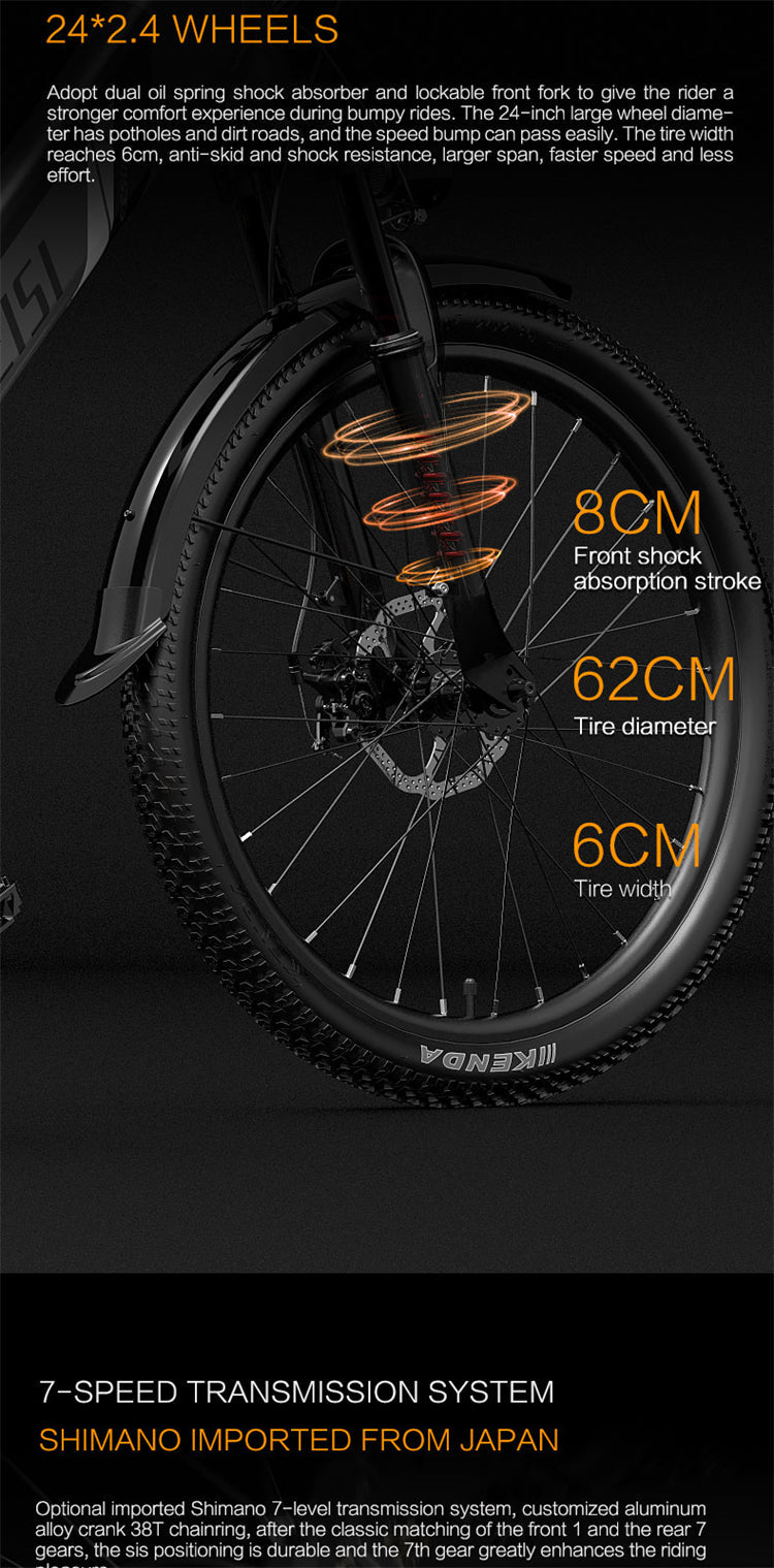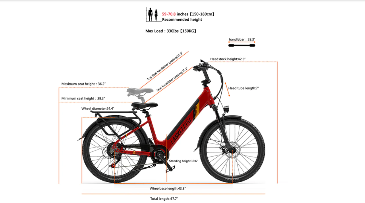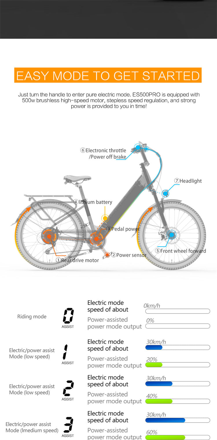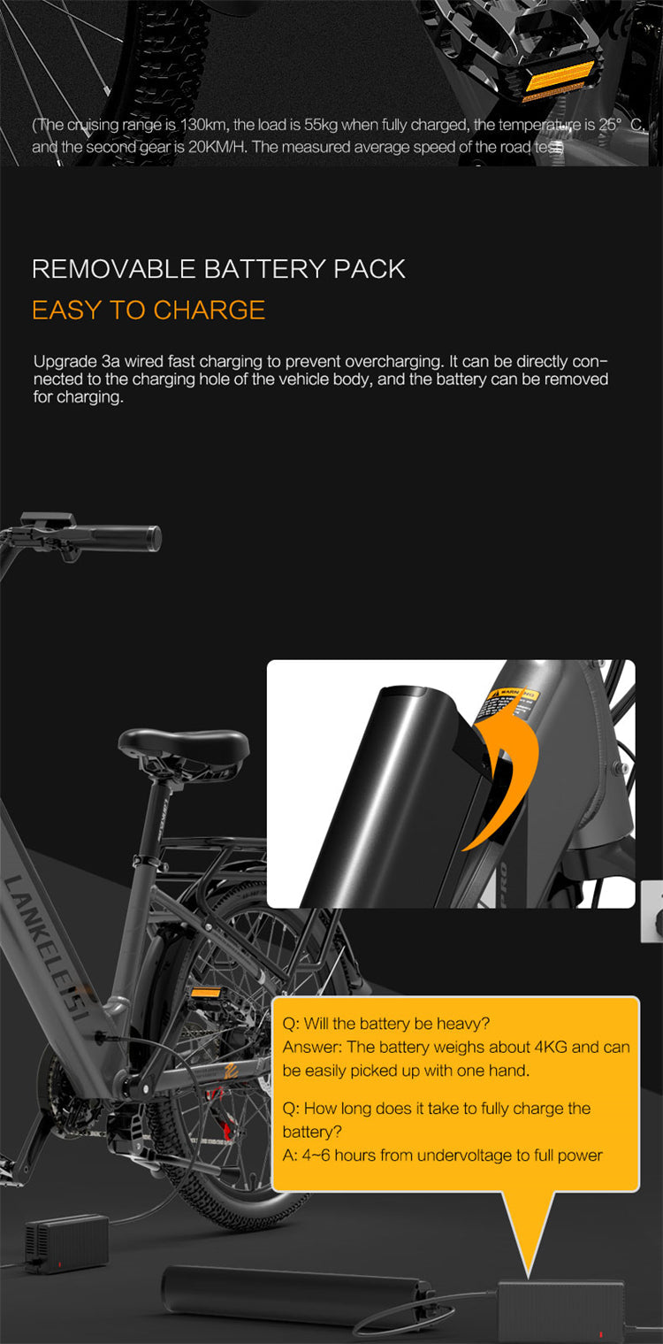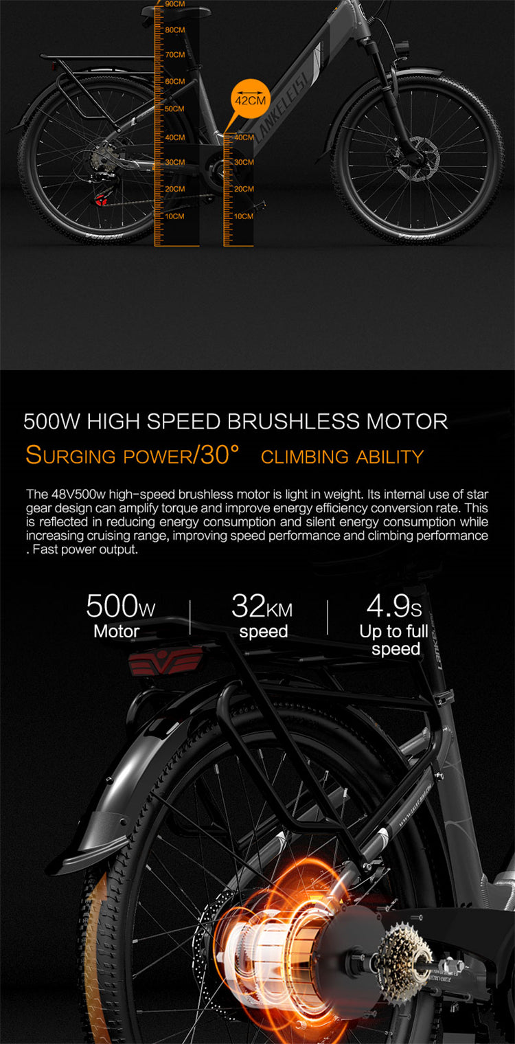 LANKELEISI ES500 Pro 24" Electric City Bike 500W Motor 48V 14.5Ah Battery