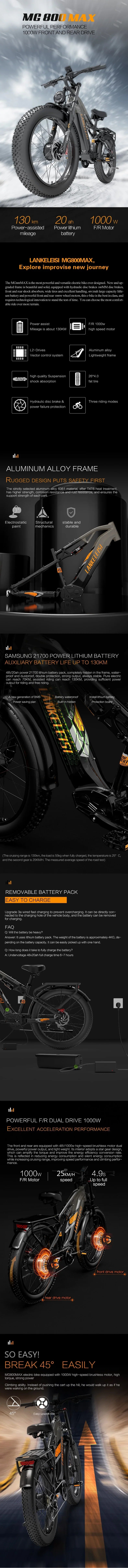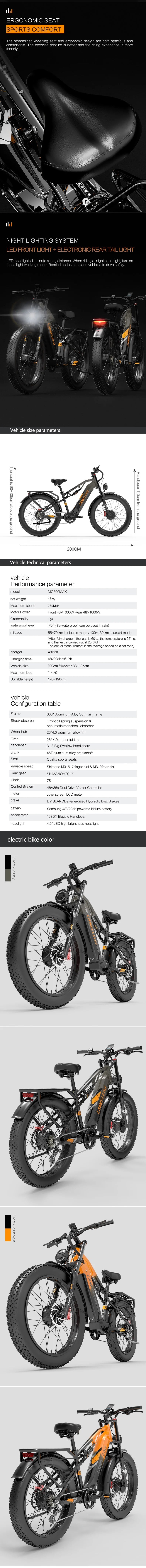 LANKELEISI MG800MAX 26" Fat Tires All Terrain Electric Bike 2*1000W Dual Motor 48V 20Ah Battery