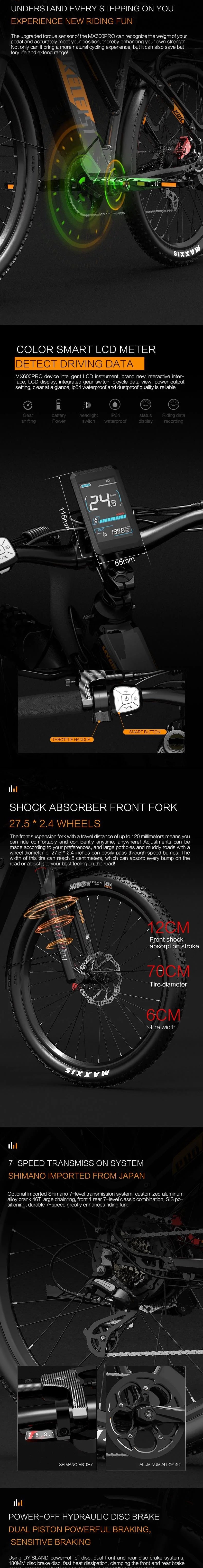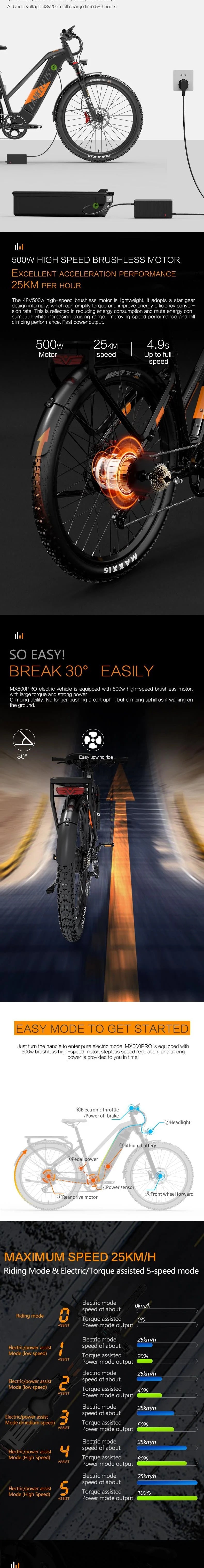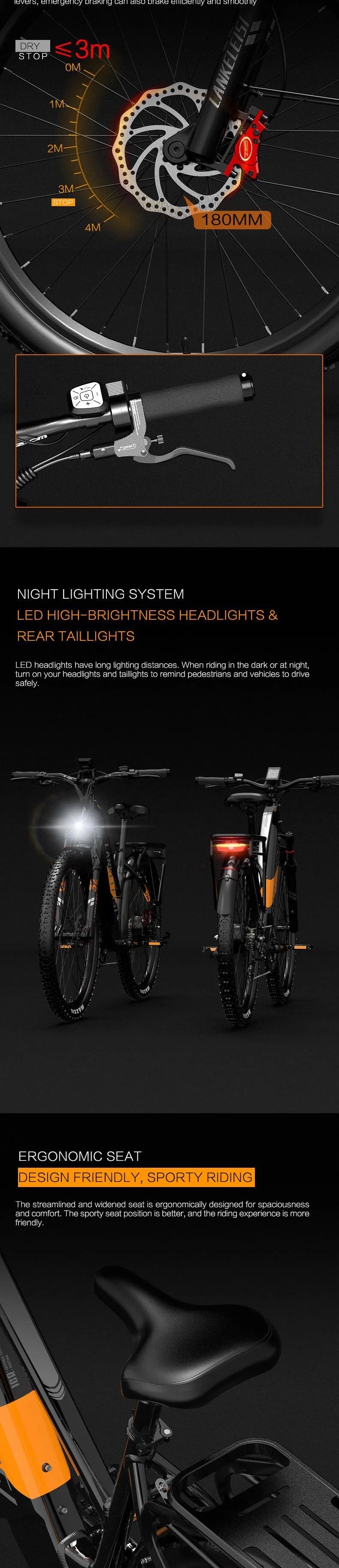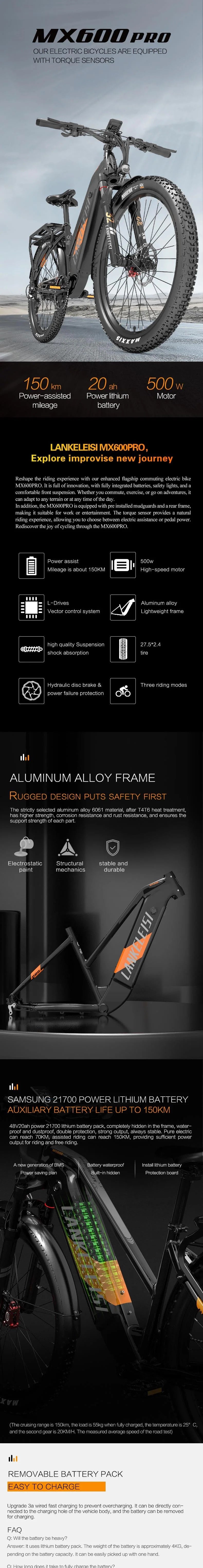 LANKELEISI MX600 PRO 27.5" Step Over Electric Bike 500W Motor 48V 20Ah Battery