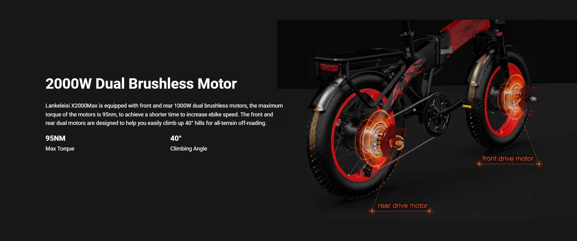 LANKELEISI X2000 MAX 20" Foldable Electric Bike 2000W Dual Motor 48V 20Ah Battery