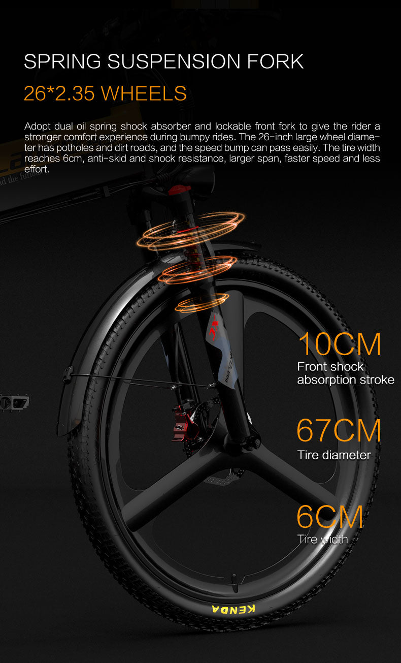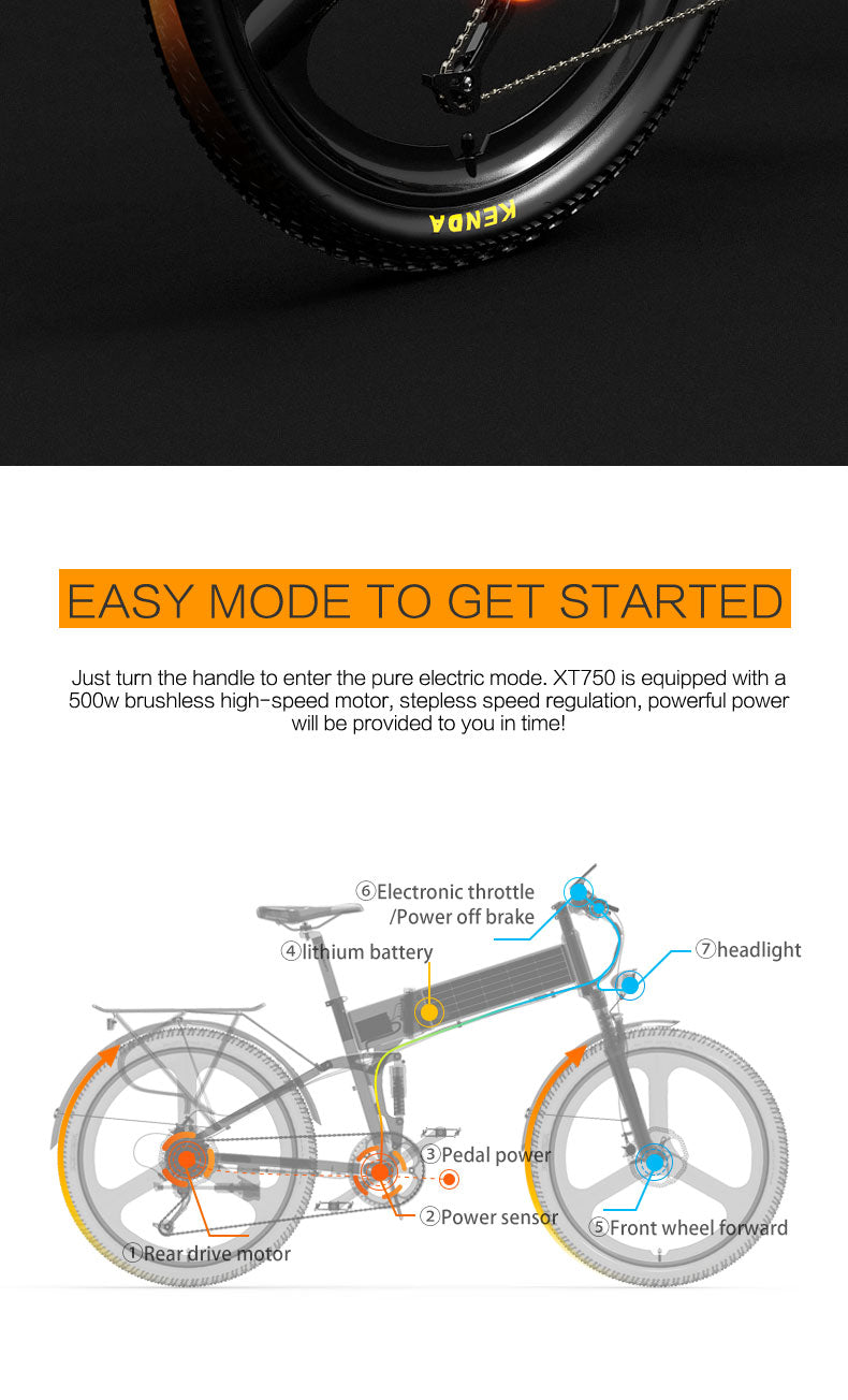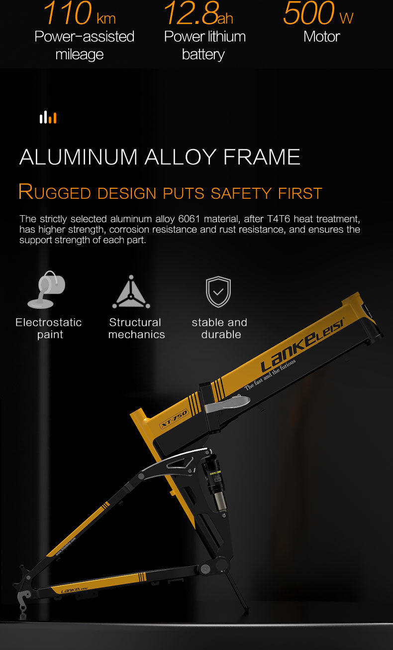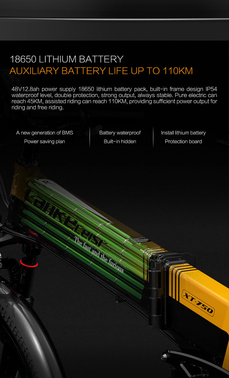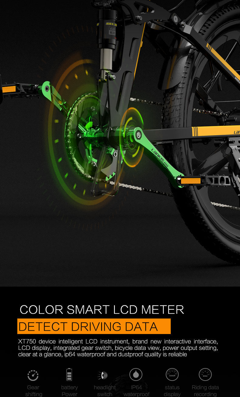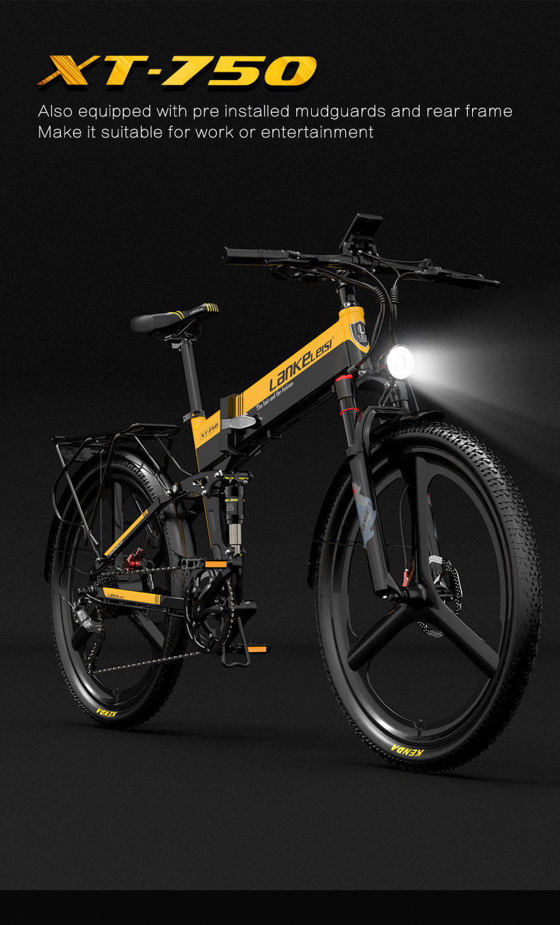LANKELEISI XT750 Sports 26" Folding Electric Bike 500W Motor 48V 12.8Ah Battery