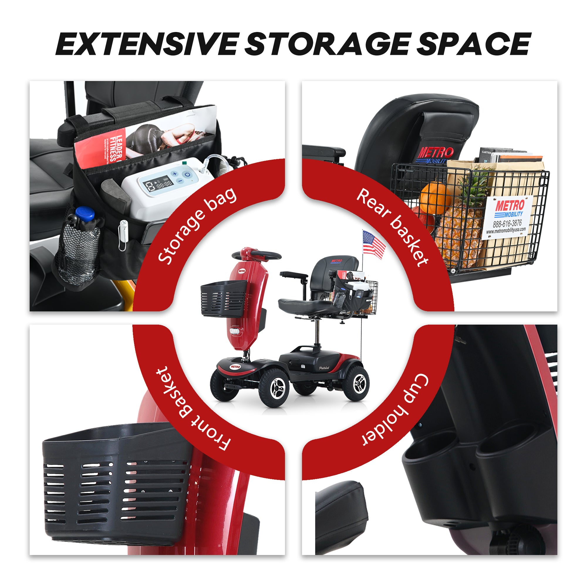METRO MOBILITY UPGRADED PATRIOT 9" 4 Wheel Electric Mobility Scooter  300W Motor 24V 12Ah Battery