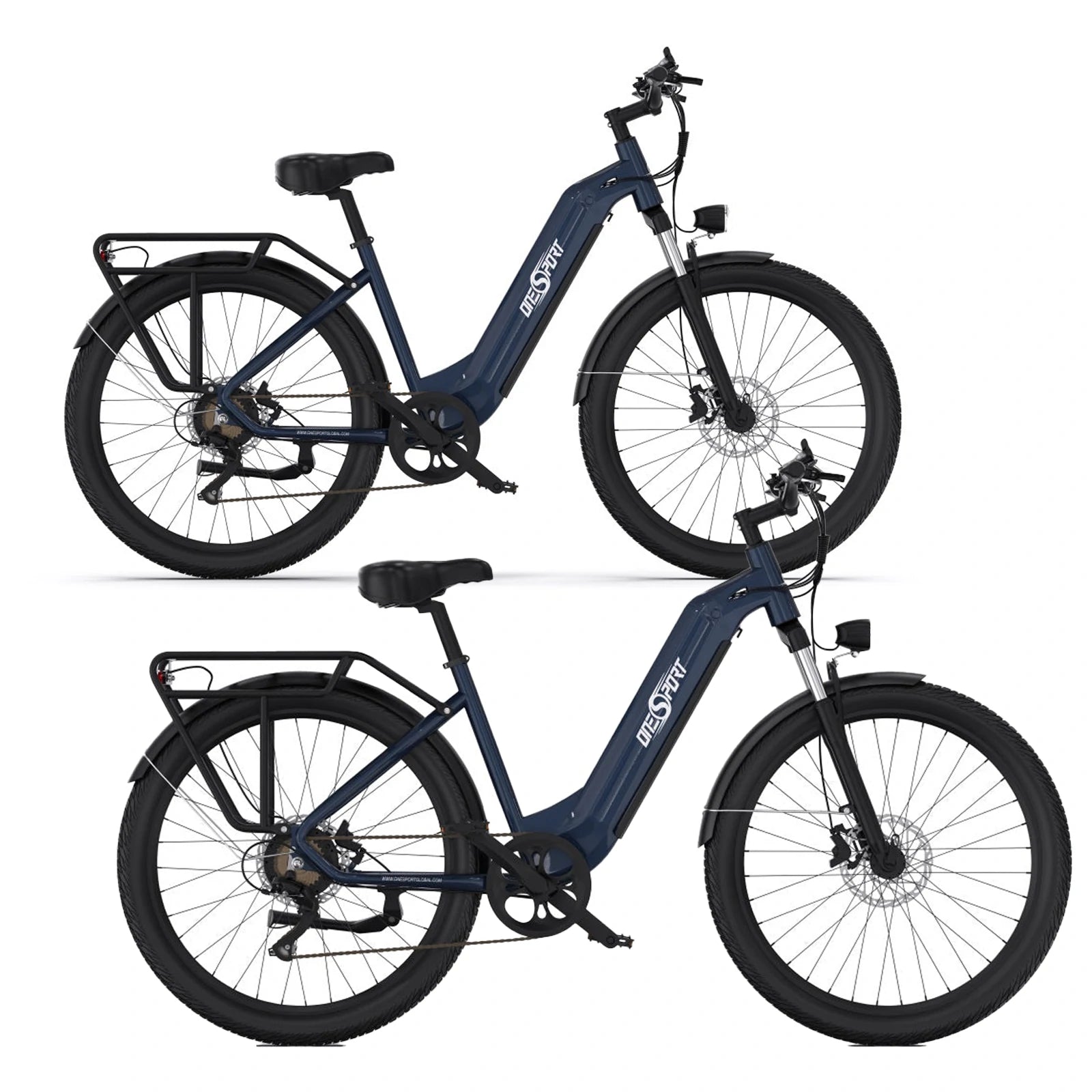 Onesport OT05 wide step-thru design of the frame makes getting on and off the bike easy for everyone.While our expert aluminum craftsmanship delivers a robust