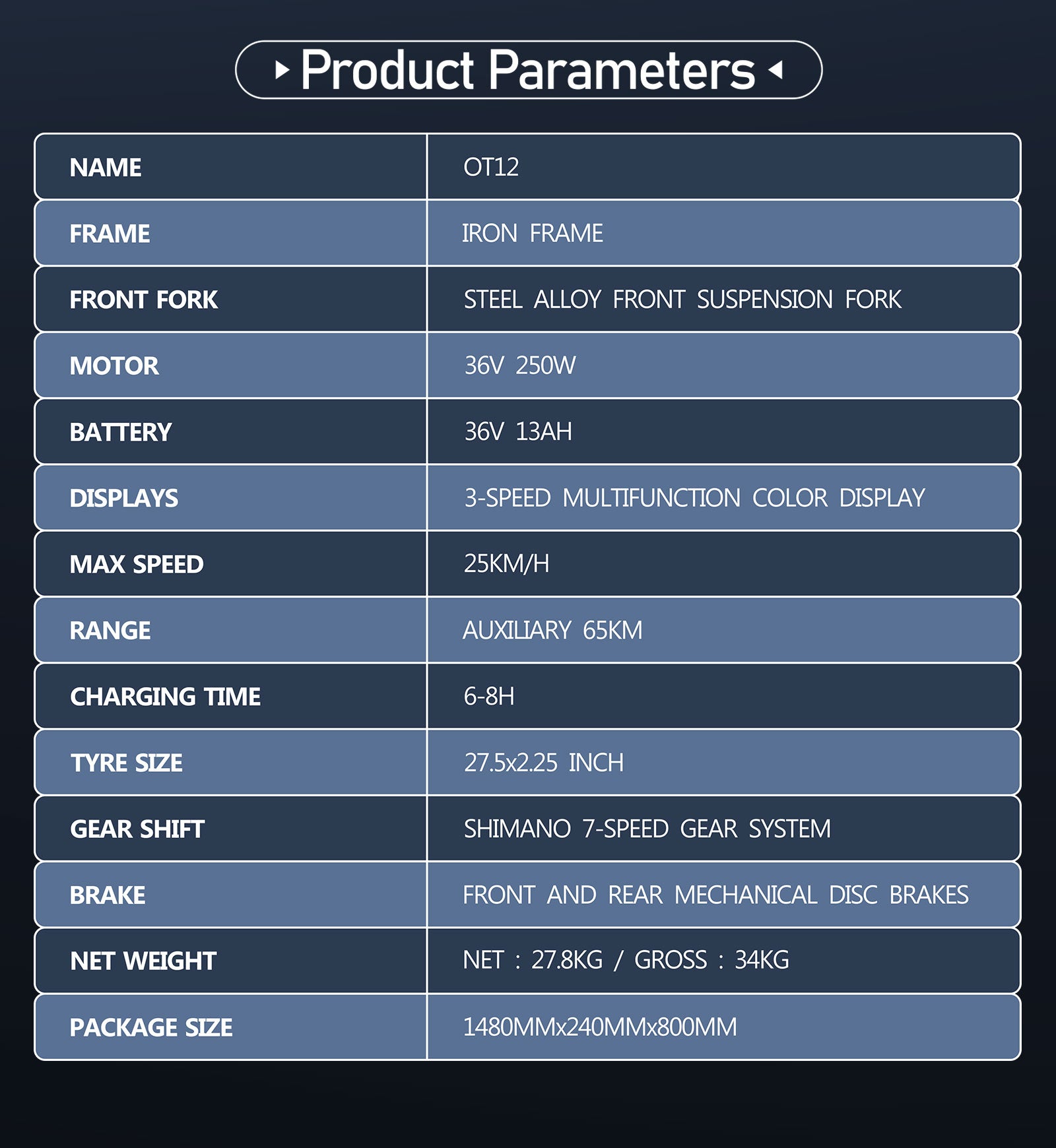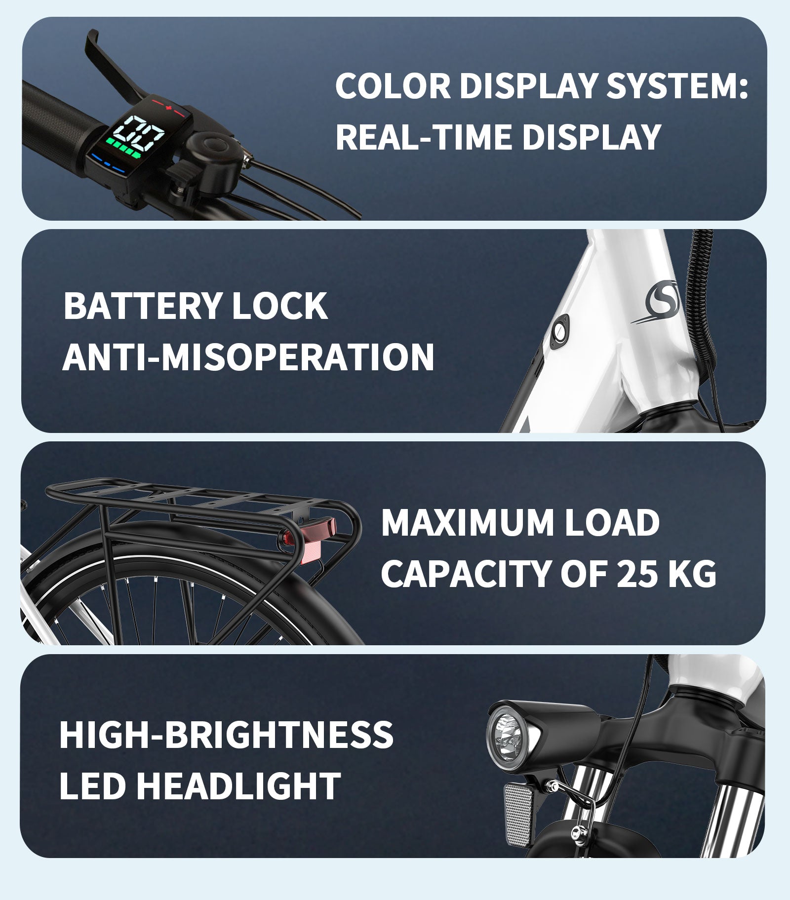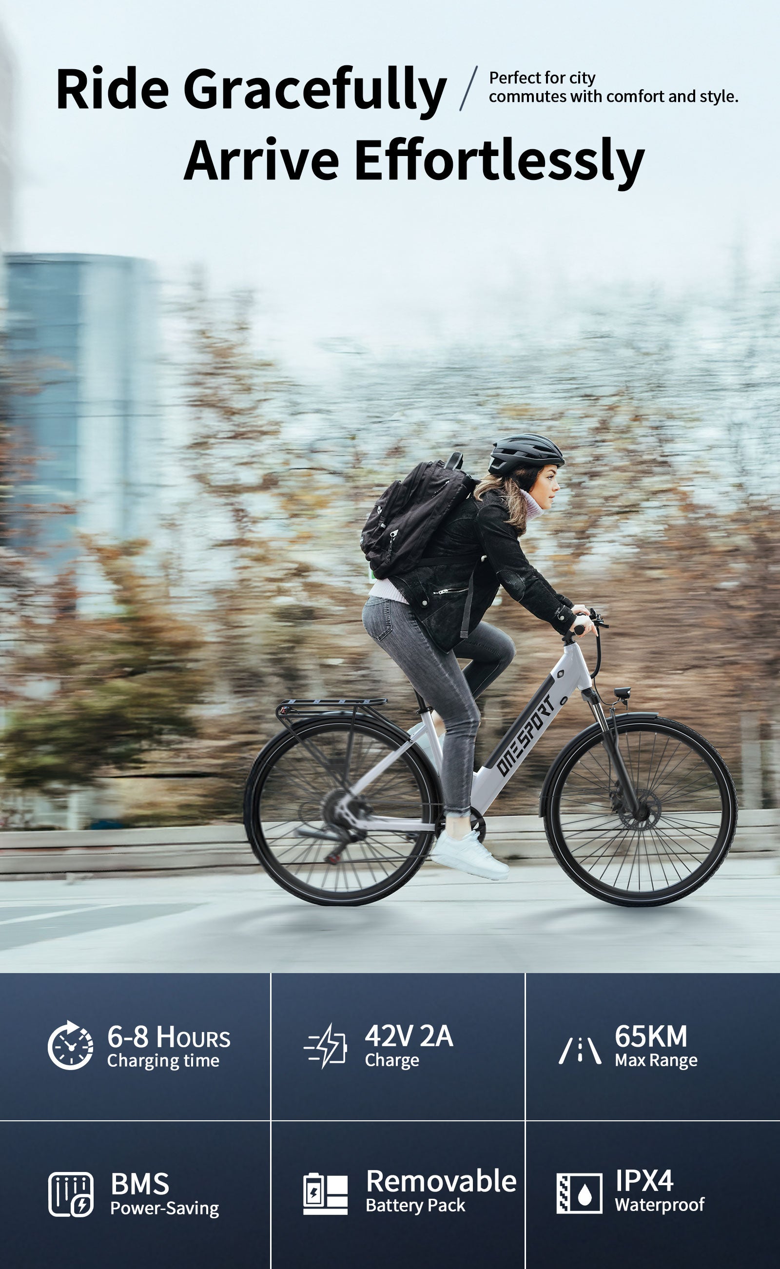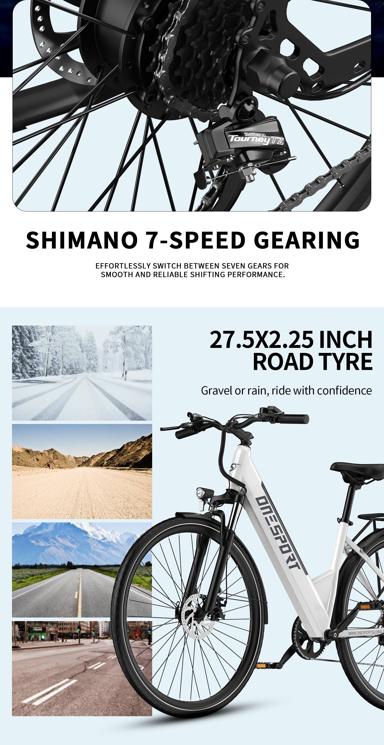 ONESPORT OT12 27.5" City Electric Bike 250W Motor 36V 13Ah Battery Support App