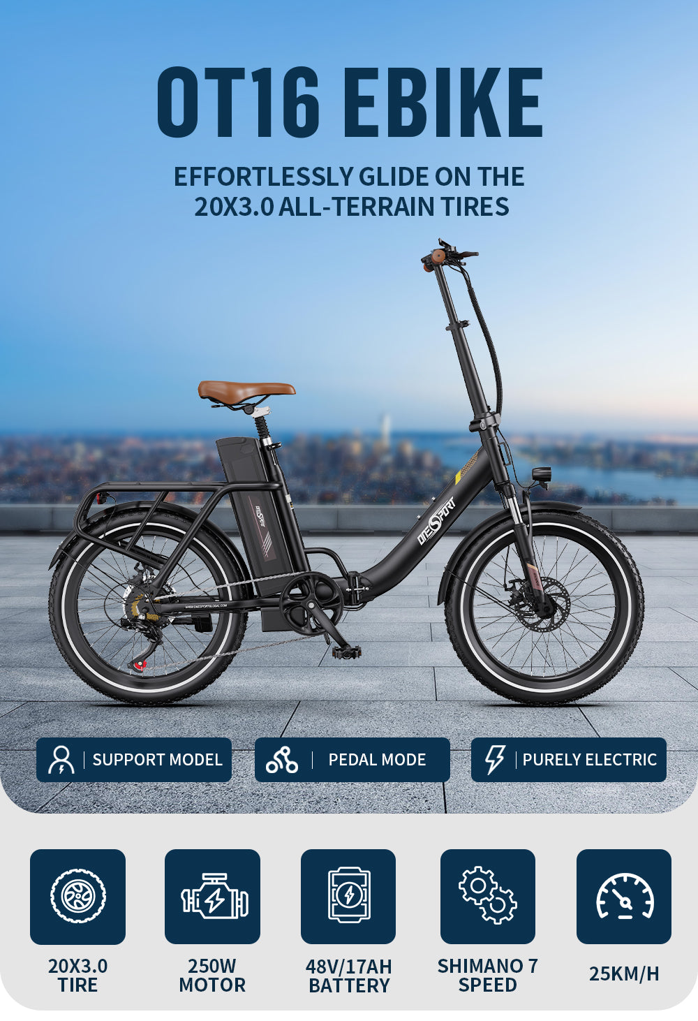 ONESPORT OT16-2 Step-Thru Electric Bike Combo