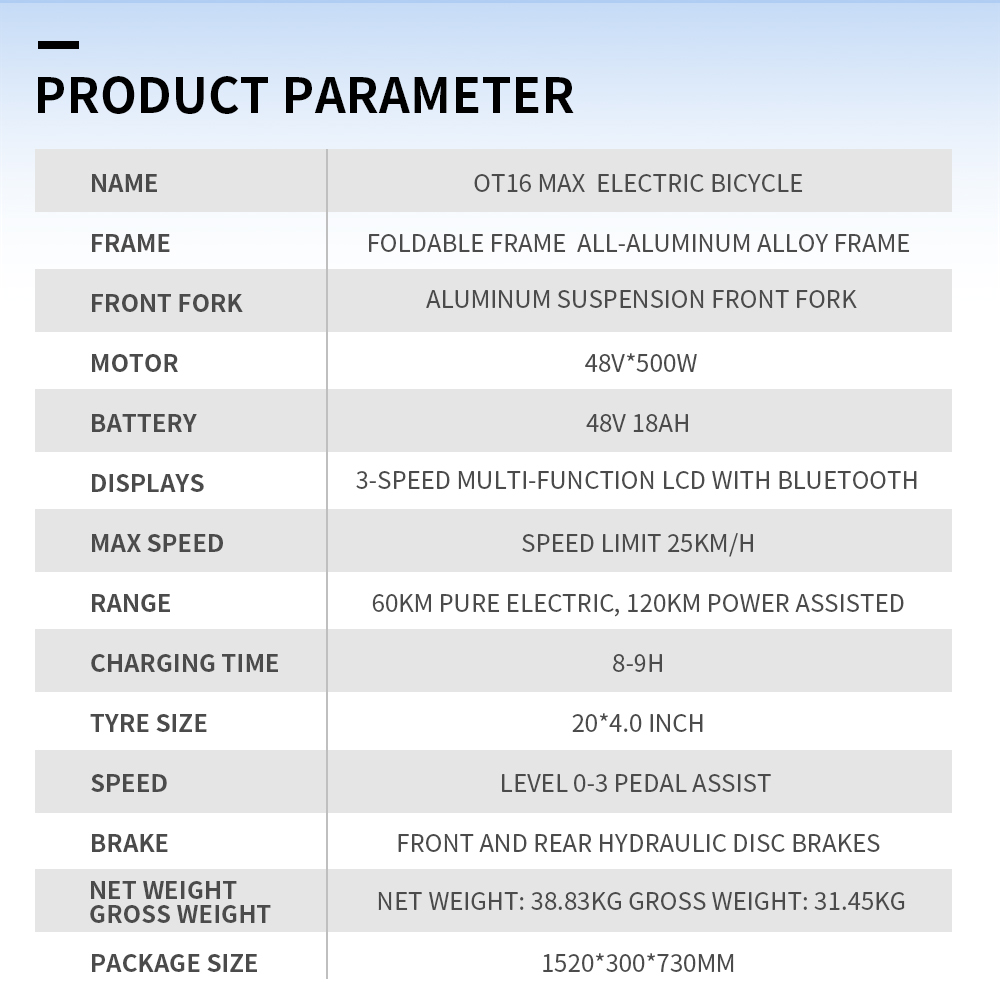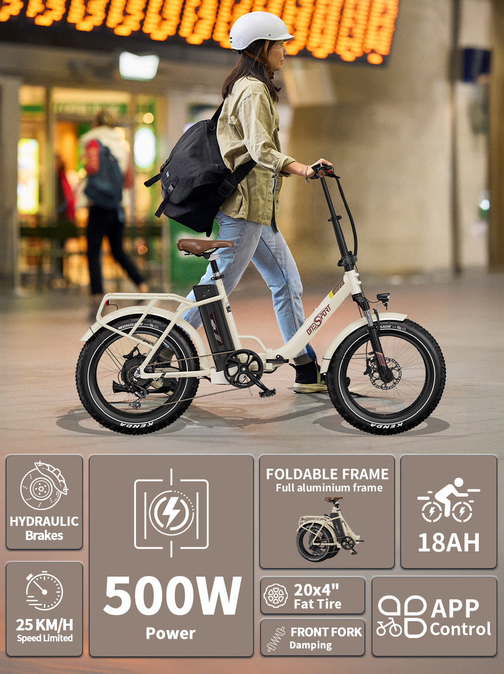ONESPORT OT16 Max 20" Folding Electric Commuter Bike 500W Motor 48V 18Ah Battery Support APP