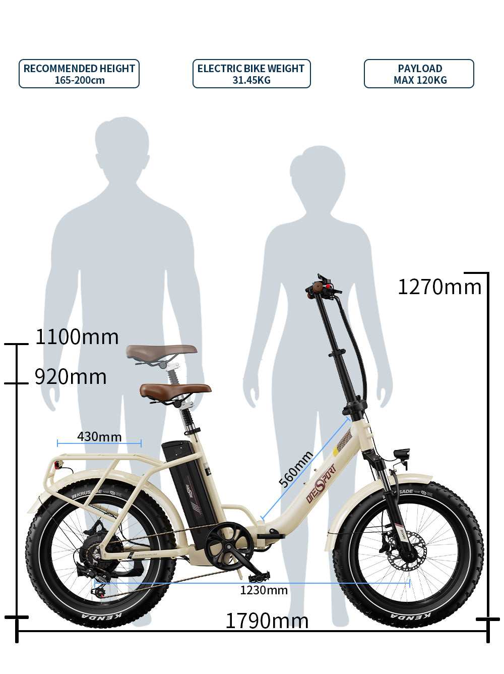 The 20℅4.0 inch fat tires offer excellent grip and stability, making every ride smooth and safe on various surfaces.