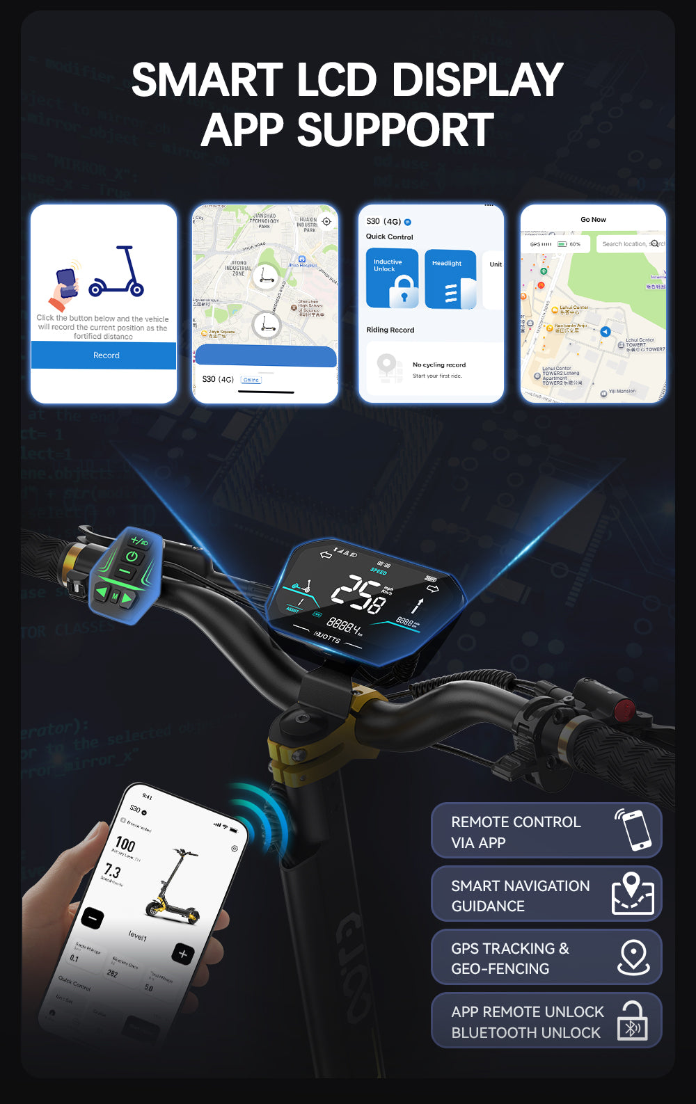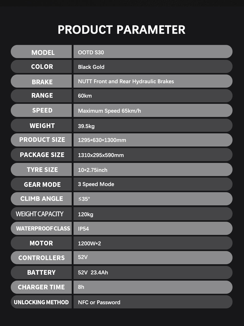 OOTD S30 10" Off-Road Electric Scooter 1200W*2 Dual Motor 52V 23.4Ah Battery