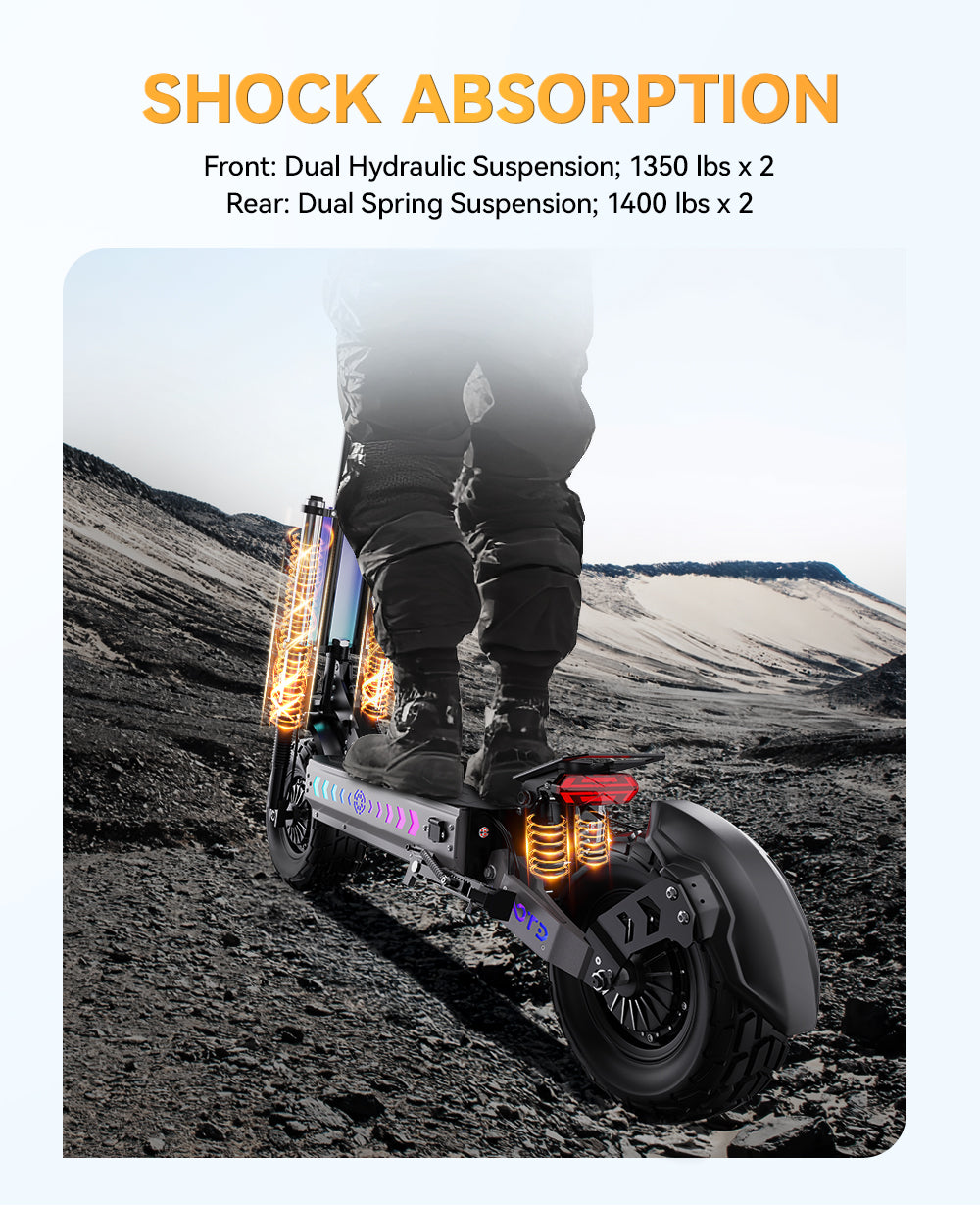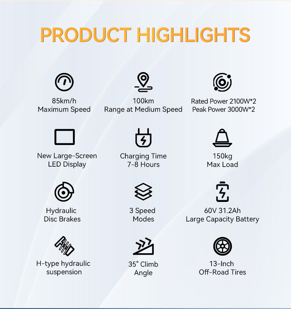 Dual 3000W powerful dual-drive, unleashing thrilling power. With immense torque, it effortlessly conquers rugged terrains and high-speed rides, delivering the ultimate off-road experience!