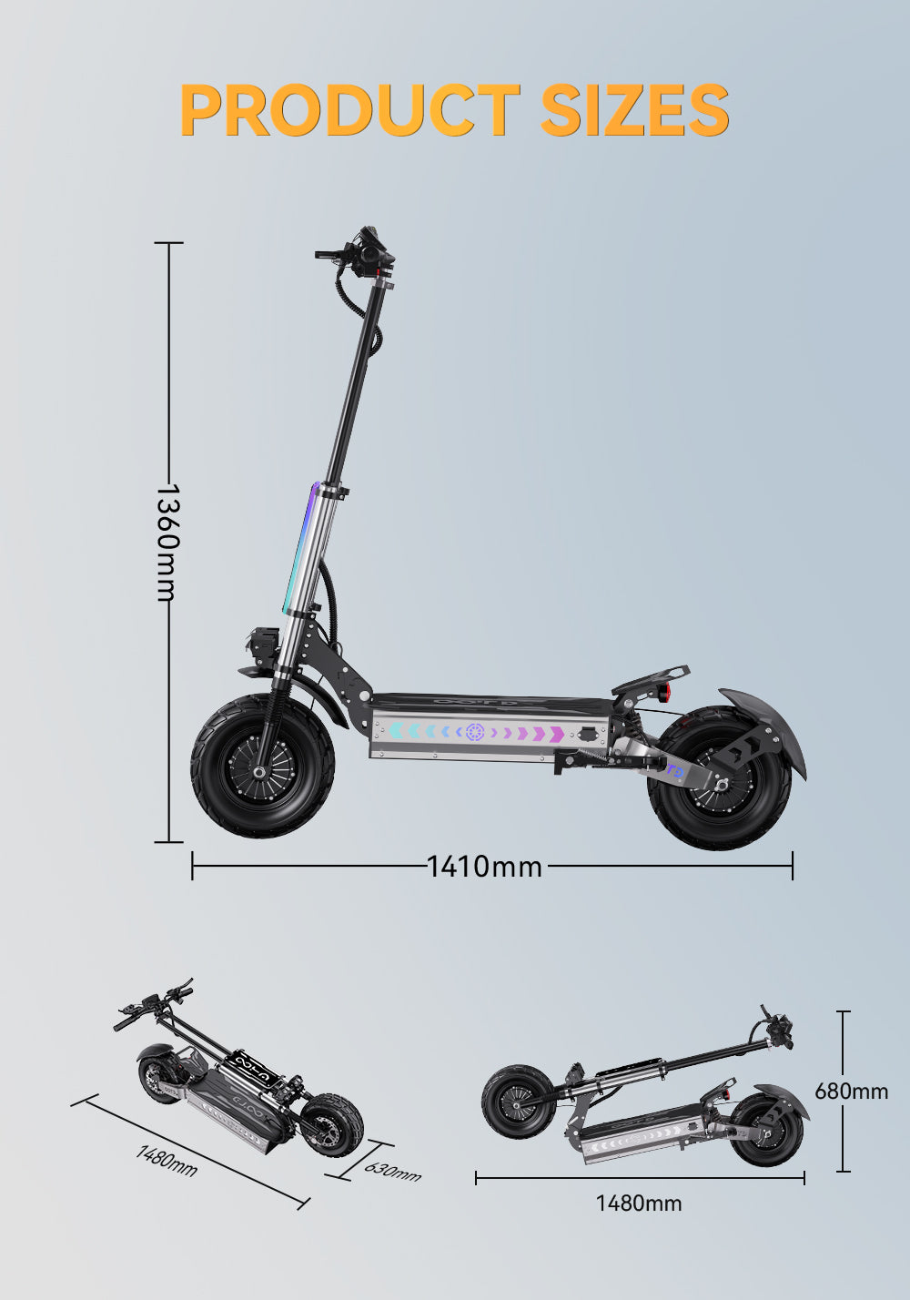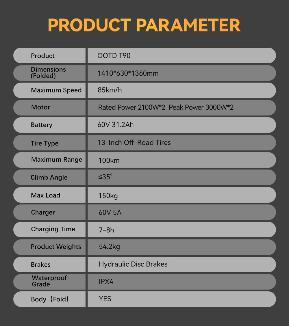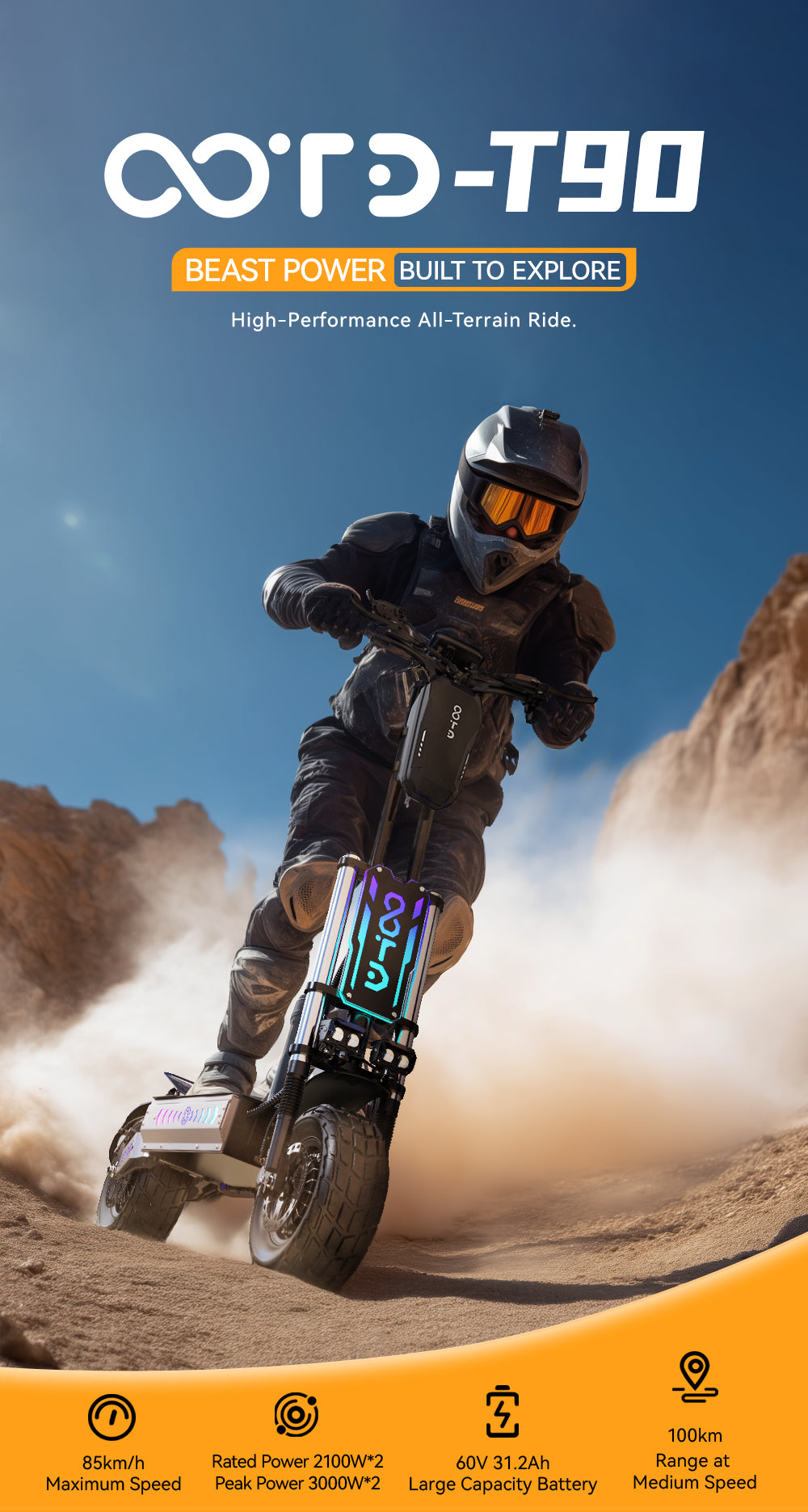 OOTD T90 13" All-Terrain 2-Wheel Scooter Electric Scooter 3000W*2 Dual Motor 60V 31.2Ah Battery