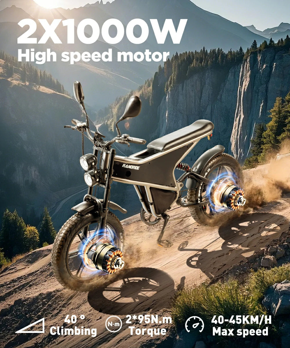 RANDRIDE DM711 20" Retro Fat Tire Electric Bike 500W*2 Dual Motors 48V 20Ah Battery