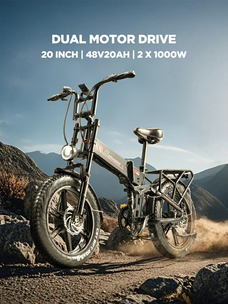 RANDRIDE YX20M-2 20" Folding Electric Bike 500W*2 (1000W*2 Peak) Dual Motors 48V 20Ah Battery