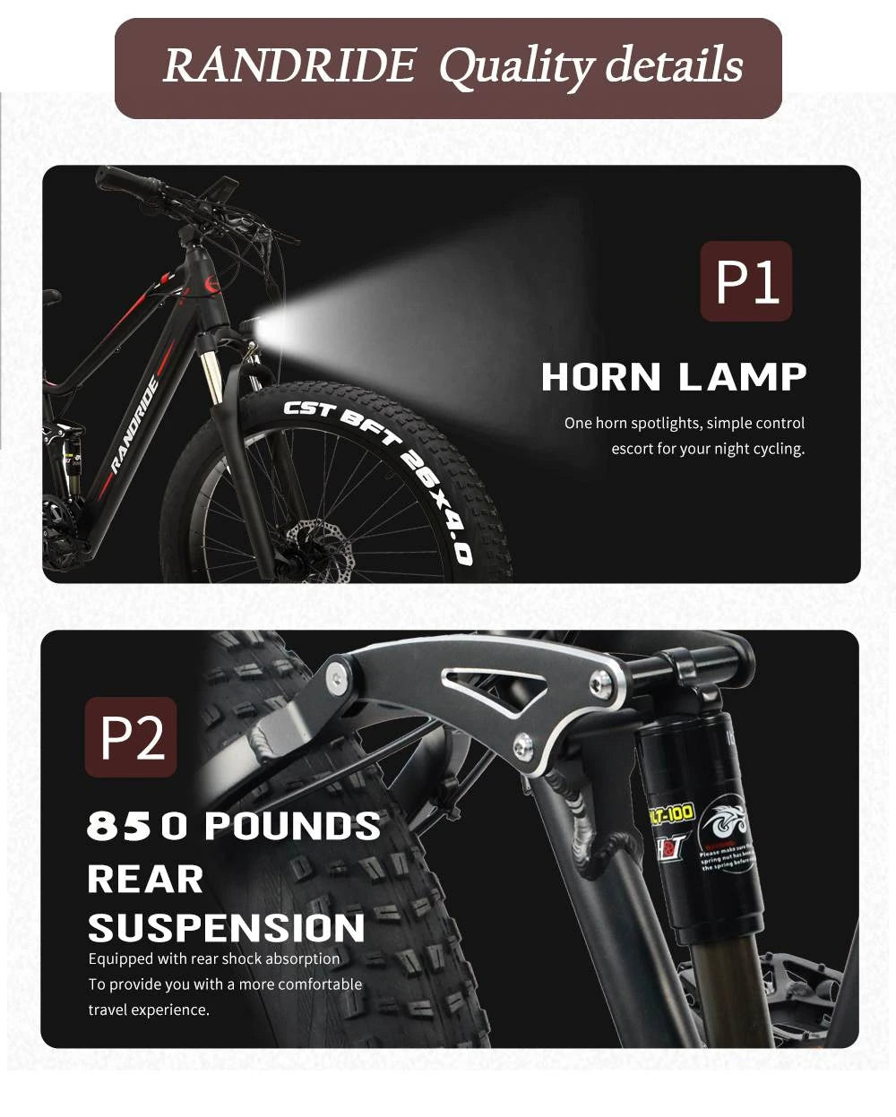 RANDRIDE YX90M 26" Electric Mountain Bike 1000W Motor 48V 13.6Ah Battery