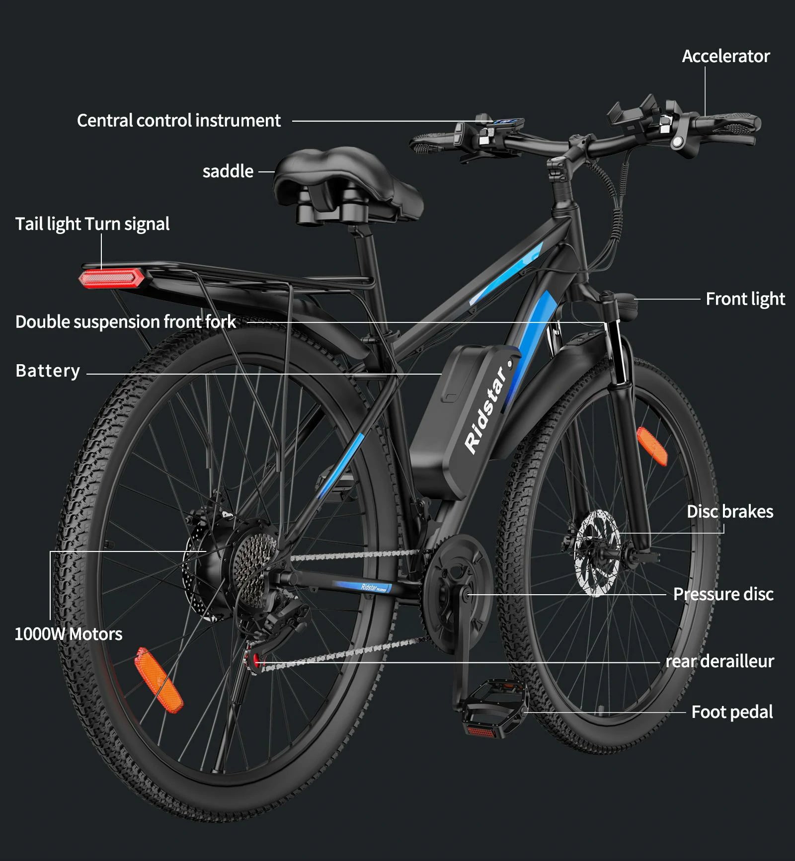 RIDSTAR S29 Pro 29" Mountain Electric Bike 1000W Motor 48V 21Ah Battery