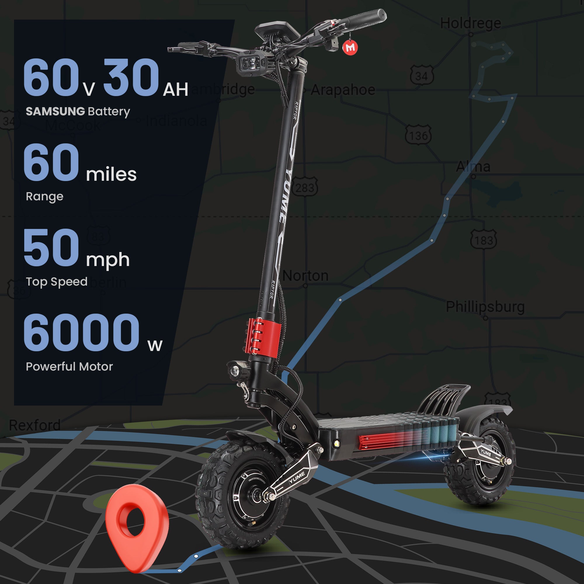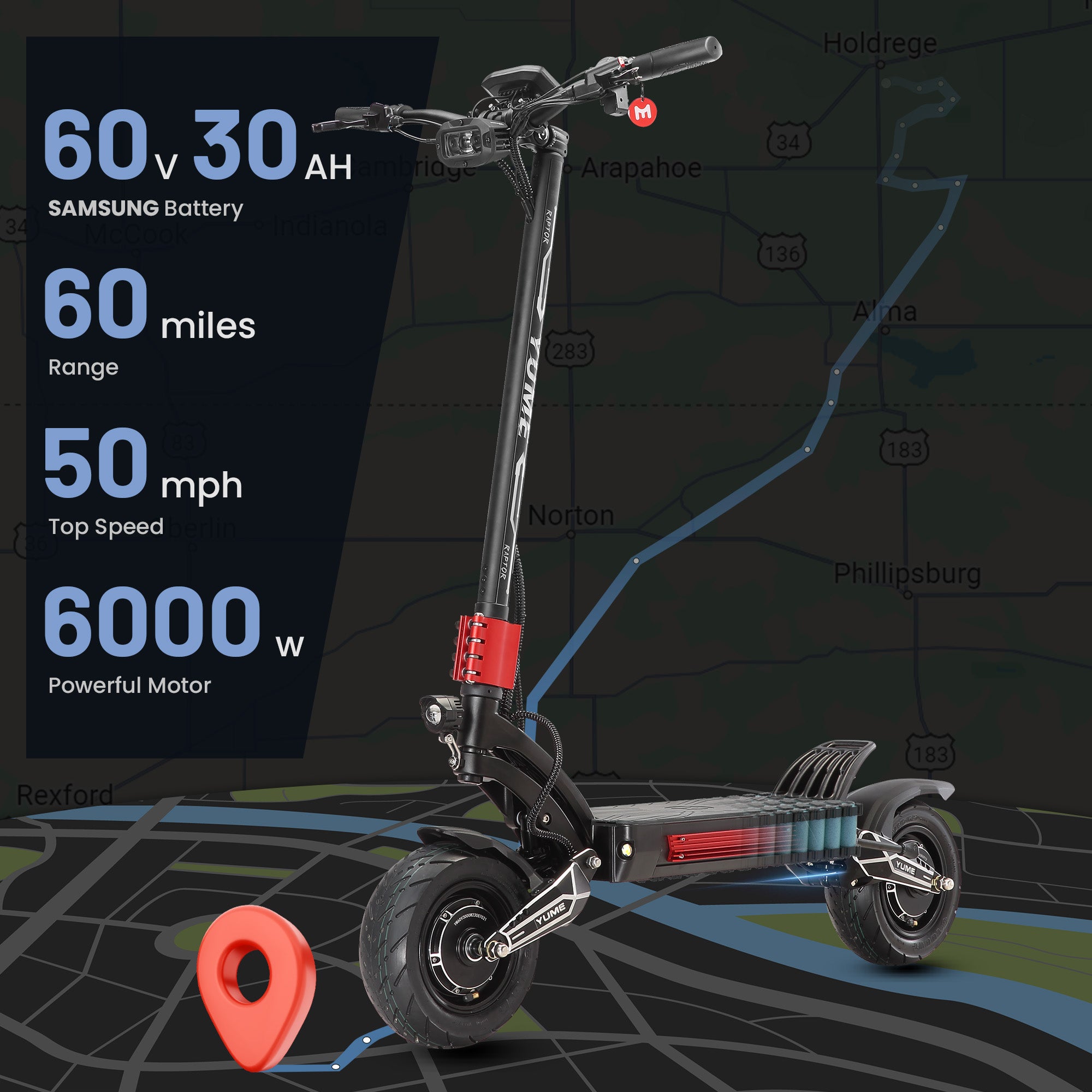YUME Raptor 11" All-Terrain Electric Scooter 3000W*2 Dual Motors 60V 27Ah/30Ah Battery