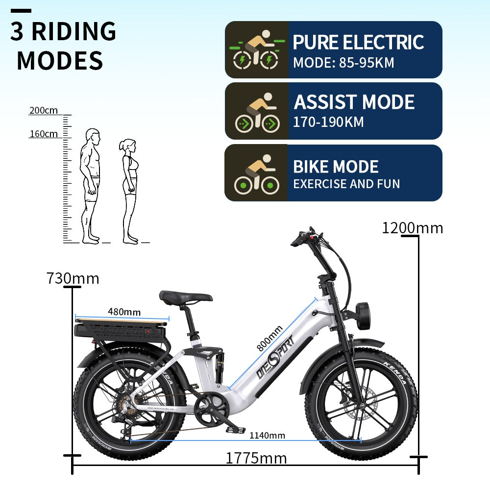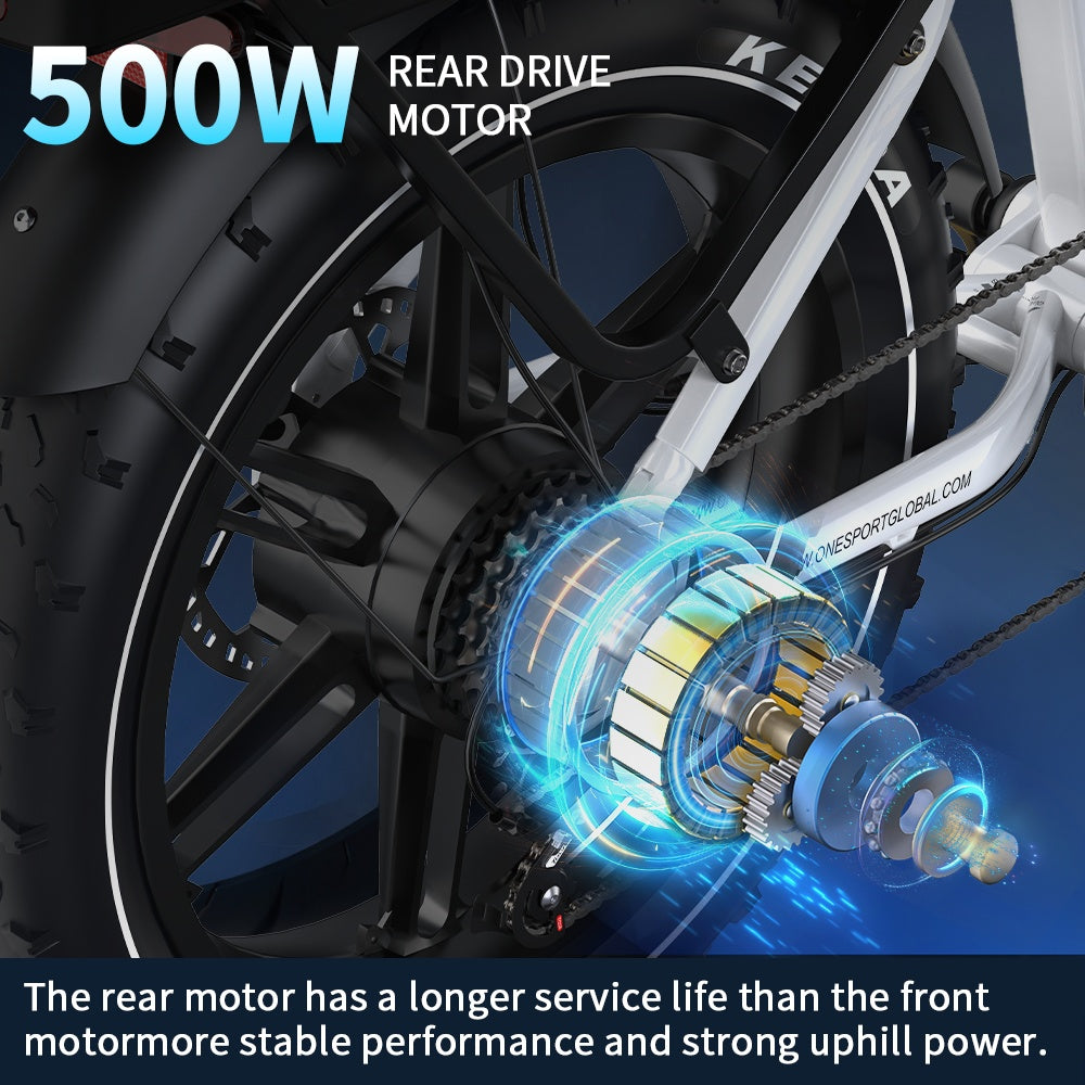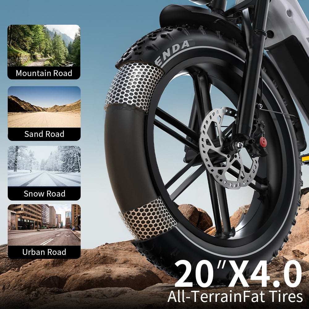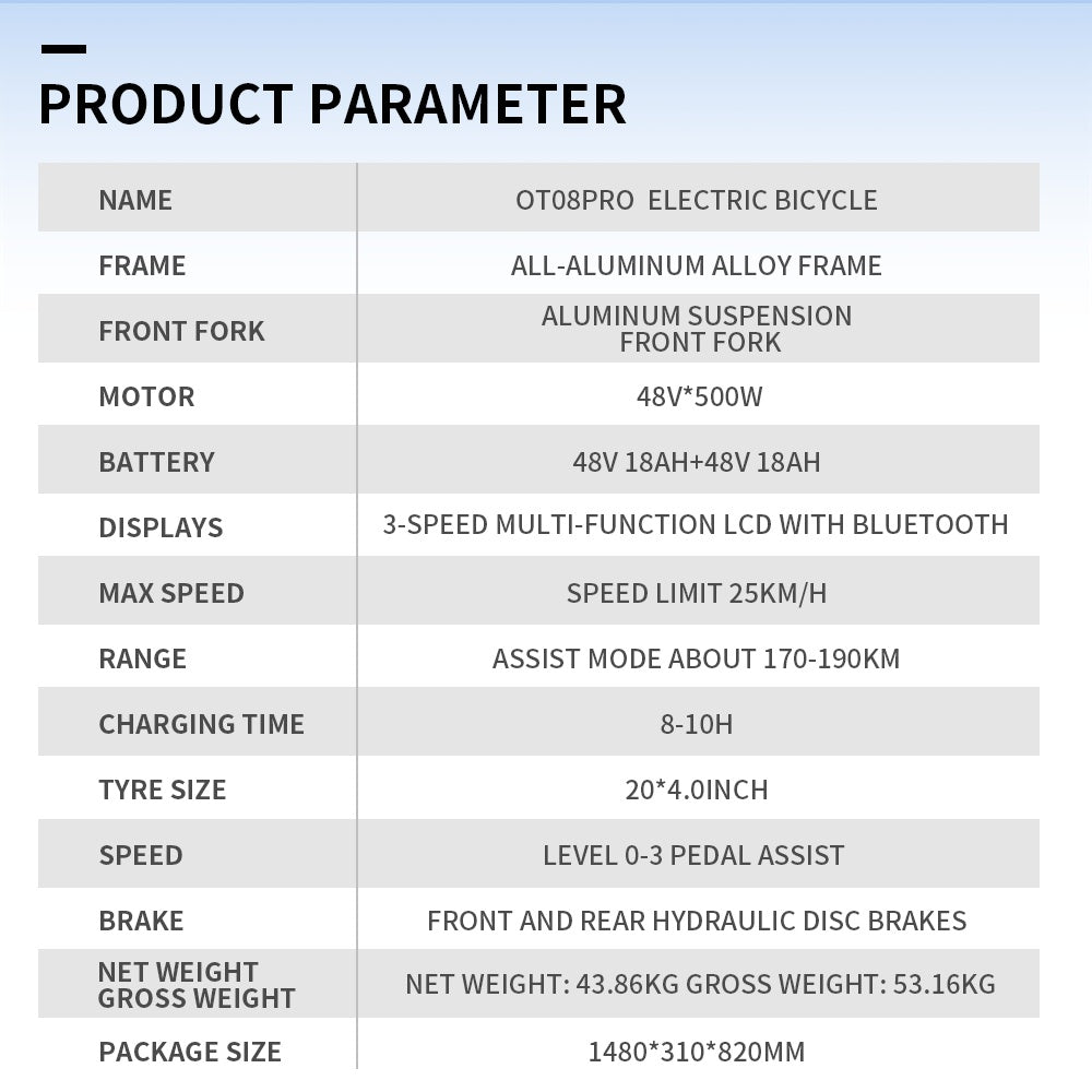 The OT08Pro fatbike features durable, high-traction tires for superior grip and stability on any terrain. Whether on city streets or rough trails, these tires ensure a smooth, controlled ride.