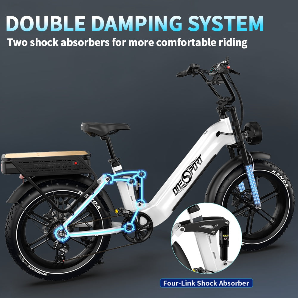 The OT08Pro full suspension ebike is built for a smooth and stable ride on any terrain, featuring a high-performance rear suspension that absorbs shocks from uneven surfaces. Whether you're commuting on city streets or tackling rugged trails, its adjustable suspension system enhances comfort and control. With a sleek, durable design, the OT08Pro ensures a comfortable, reliable, and enjoyable e-bike experience every time.