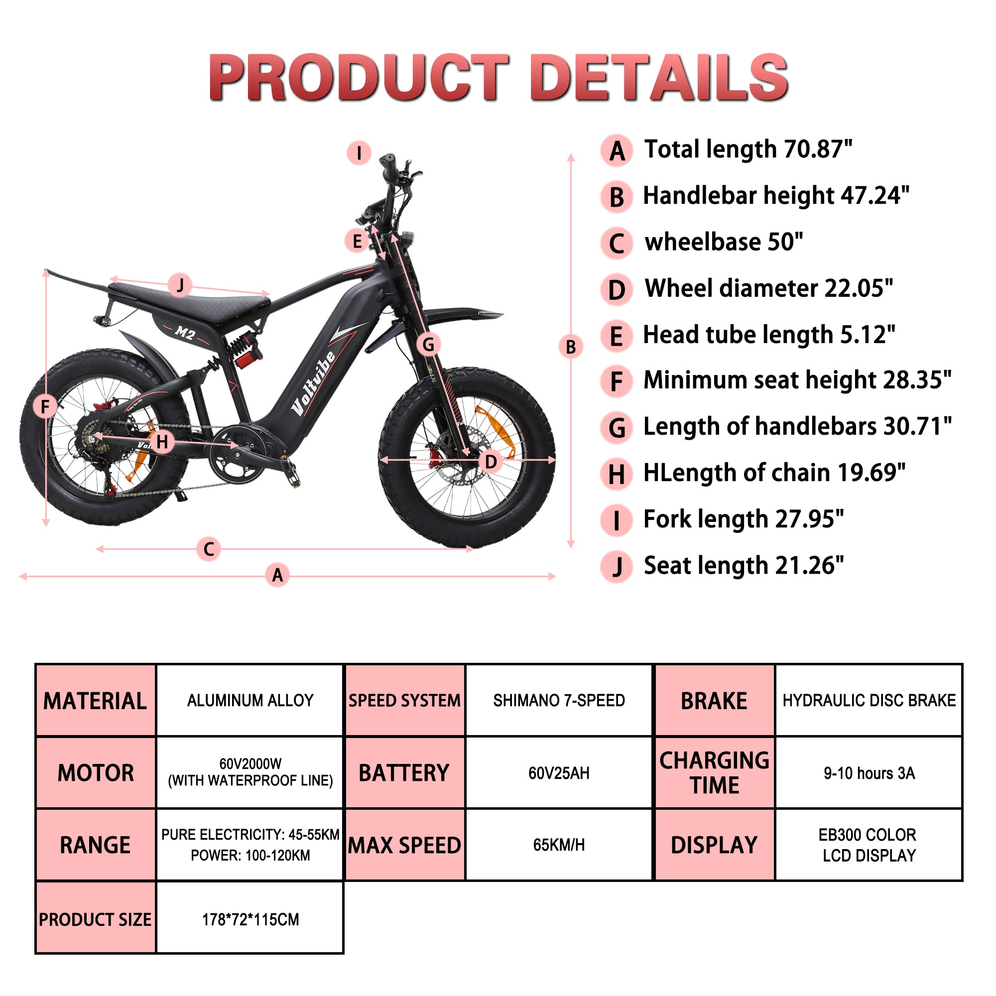 VOLTVIBE M2 20" Off-Road E-Bike 2000W Motor 60V 25Ah Battery