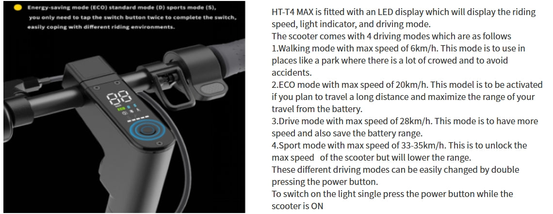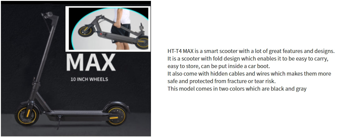 EMOKO HT-T4 Max 10" Folding Electric Scooter 350W(Peak 500W) Motor 36V 15Ah Battery With APP